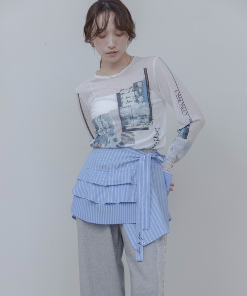 Spring-Summer Collection コーディネートのアクセントになるストライプフリルラップスカート ピッチの異なる2種類のストライプ素材を組み合わせ、表情のあるデザインに仕上げました。 細めのストライプと小ぶりなフリルが、甘さを抑えた上品で綺麗めな印象を演出します。 ウエストの紐先には刺繍を施し、さりげないポイントに。 巻きスカート仕様でレイヤードスタイルも楽しめる一枚です。 カラーによって素材感が異なるのも魅力。 オフカラーはやや柔らかく、ほんのり透け感のある軽やかな素材。 ライトブルーはコットンのシャツ素材を使用し、きちんと感のある仕上がりです。 同素材の**ストライプフリルシャツ(84681)**と合わせた、セットアップスタイルもおすすめです。 ●裏地:なし ●ポケット:無し ●透け感:オフ/あり ライトブルー/なし ●伸縮性:なし ●季節:春・夏 【スタッフ着用コメント】 〈スタッフ名 : 〉ONJI 年齢: 30代 / 身長: 154cm / 体型:普通 / 普段サイズ:M ・サイズ感 :4つのボタンがあり調整可能。ボタンを1つだけ留めて、紐だけでキュッと結ぶのもかわいいです。 ・素材感:オフは透け感がある柔らかなさらっとした素材。ブルーは薄手のシャツ素材。 ・デザイン:セットアップのシャツとセットアップで着たらかわいい!ということで企画したアイテム。フリルが甘くなりすぎず、刺繍がアクセンに。 ・コーディネート:Tシャツ×デニムなどいつものコーデに巻くだけで新しいコーデが完成します。 スエット合わせもかわいいです。また、トップスにニットやスエットを合わせて、シャツヘムのように出してわレイヤードライクに着用するのもおすすめです♡ ※画像の商品はサンプルです。 実際の商品と仕様や加工、サイズが若干異なる場合がございます。 ※撮影場所やイメージにより、実際の商品と色味が若干異なる場合がございます。 ※サイズに若干の個体差が生じる場合がございます。 予めご了承下さい。 【オススメの機能について】 《商品のお気に入り登録》により、完売カラーの再入荷通知、ラスト1点の通知、セールの通知も受け取ることができます! 《ブランドのお気に入り登録》により、新商品や再入荷など、イチ早くブランドのお得なセールやクーポン配布などの情報を受け取ることができます! お得な情報をGETして頂く為にも、是非ご活用くださいませ。