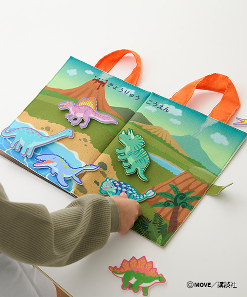 知育、手軽さ、「着る」楽しさ!色んな要素が入っているからプレゼントにも最適!フェルト製のカラフルな恐竜たちや、バラバラになった恐竜の化石、発掘道具、恐竜のスペックカードやクイズカードを使って、恐竜について遊びながら学べます。 白衣風エプロンを着て博士になりきって遊んだり、エプロンに恐竜を貼ってデコったり、恐竜を知らないお子様にも詳しいお子様にも幅広く楽しめる内容となっております。 ・バラバラになった恐竜の化石を、道具を使って発掘し復元していくことで、恐竜の骨の構造をパズルのように楽しみながら学べます。 ・「きょうりゅうこうえん」のページでは、色々な種類の恐竜で想像力を膨らませて遊んだり、恐竜カードのスペックと照らし合わせてどんな恐竜か学べます。 ・恐竜カードも恐竜クイズカードも全てひらがな表記なので、ひらがなを覚えるきっかけにも。 【対象年齢_3歳以上】モデル身長:97cm 白衣(着丈×身巾×肩巾)52×35×26 絵本(H×W×D)24×20×2 (c)MOVE /講談社