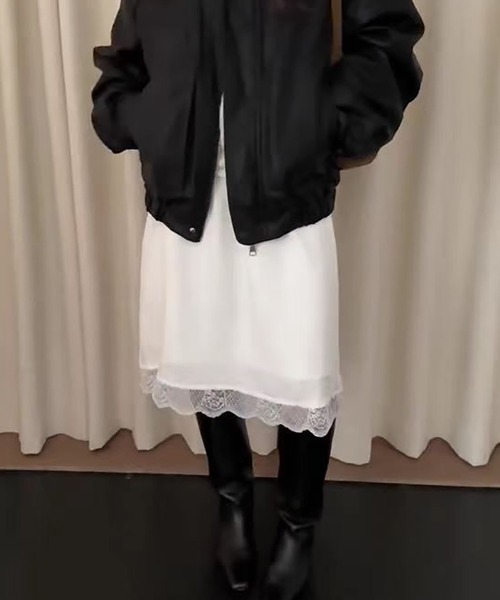 レイヤードするだけでおしゃれ見え◎今季マストなレーススカート。 ■デザイン 裾のレースがふわりと揺れる、女性らしさたっぷりのミニスカート。 ウエストは総ゴムで、自然に落ちるシルエットが美しく、ストレスフリーな穿き心地。 ベロアのような微光沢と柔らかな質感があり、シンプルなトップスでも“高見え”する仕上がり。 アイボリーは柔らかく上品に、ブラックは深みのある色味で大人っぽく、2色で雰囲気がガラッと変わるのも魅力。 ■素材 - ポリエステルの軽さに、ベロア調のしっとり感が加わった上品な質感。 - 裾のレースは繊細な柄で、甘すぎず大人が使いやすいデザイン。 - ウエストゴムで締め付け感がなく、長時間の着用も快適。 - シーズンレスで使える程よい厚みと落ち感。 ■スタイル - シンプルなTシャツやニットと合わせるだけで、即フェミニンなバランスに。 - 足元はロングブーツやローファーでクラシカルに。 - デニムやワイドパンツとレイヤードしてトレンドライクな着こなしに。 - パーカーやオーバージャケットとラフに合わせて季節の変わり目にもおすすめ◎ ---------------- 透け感:なし 伸縮性:なし 裏地:あり ---------------- ------------------------------------ 【スタッフが着用しました!】 身長:158cm 普段着用サイズ:S~Mサイズ 今回着用サイズ:FREEサイズ ■ 着用感 - トレンド感はありながら上品さもあり。 - 穿くだけで華やか。ベロア調×レースの高見えスカート。 - ひざ上の丈感でレイヤードしてもバランスがとりやすい◎ - ウエストゴムで楽な着心地です。 ------------------------------------ 【お買い物をよりお楽しみいただく為に】 ▼お気に入り登録 サイズ・カラーを指定して、♡マークをクリック![セール通知・ラスト1点の通知・完売アイテムの再入荷通知]を受け取ることができます。 ▼ブランドのお気に入り登録 新商品や再入荷、タイムセールやクーポン等いち早くブランドのお得な情報を受け取ることができます。 ------------------------------- ※取り扱い上のご注意 染色の特性上、発汗や摩擦により色落ちしたり他のものに色移りすることがありますのでご注意ください。 韓国ファッション オフィスカジュアル ガーリー 大人カジュアル レースレイヤードスカート
