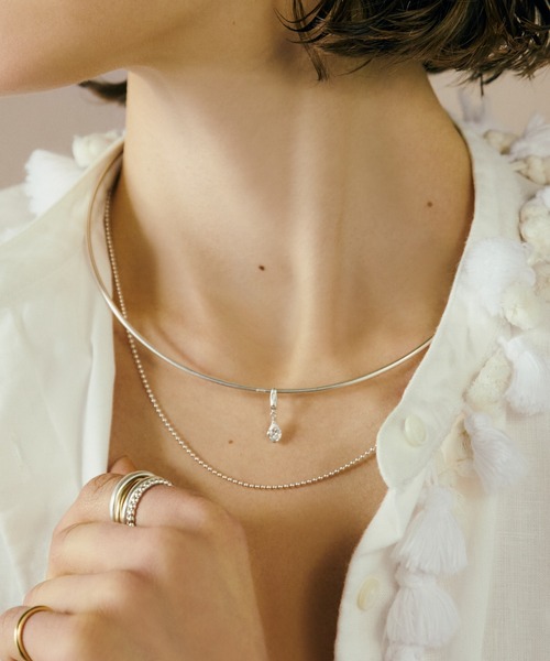 両サイドの先端に鉱物の欠片の様なテクスチャーを施し、アシンメトリーなバランスが特徴的なシャードチョーカー。 シンプルなデザインで普段使いはもちろん、チャームを通したりチェーンネックレスと合わせて着用するなど、アクセントをプラスすることで、自分だけのオリジナルな装いにカスタマイズ可能。 また、チョーカーを前後逆向きに付けて端にチャームをつけてもクラスアップした印象になります。 ※前後逆向きの着用は画像をご参照ください ※こちらの商品は一つ一つ手作業で生産しておりますので1点1点の風合いが微妙に異なります。 ※silver925素材のため時間の経過に伴い変色いたします。風合いの変化と共にあなただけの表情を末永くお楽しみください。 ※デザインの特性上、多少のサイズの誤差がある場合がございます。予めご了承ください。