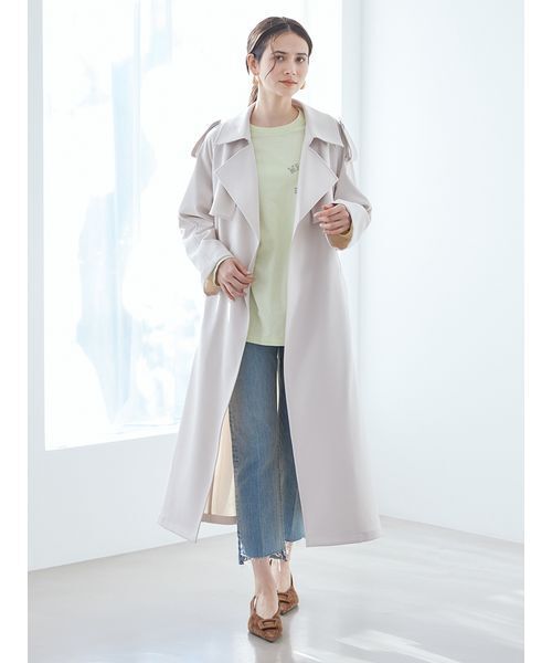 【さっと羽織るだけでこなれた雰囲気。撥水加工もうれしい、ハンサムな本格トレンチ】 【Design/Styling】 さっと羽織るだけで、お洒落なこなれ感を醸し出せる、大人仕様のトレンチコートです。 オーバーサイズでレイヤードしやすいのもポイントです。 また、雨の日にもうれしい撥水加工で、春の長雨にも、梅雨の肌寒い時期にも重宝します。 フロントのボタンを廃したことで、よりヌケ感が出るようにしたデザイン。 共布のベルトも、バックルをつけずに結ぶタイプで、軽さとスタイリッシュさを楽しめます。 カジュアルすぎない綺麗な目面が上品でラグジュアリーな雰囲気も。また、裏地をつけない単衣仕立てなので、軽くさらりと着こなせます。 肩章やガンフラップのデザインで、正統派トレンチのハンサムな印象を残しながらも、女性らしい洗練されたムードやトレンド感もしっかり出してくれます。 【Fabric】 程よいハリ感と落ち感のある素材に、撥水加工を施しているので、雨の日でも安心して着こなせます。 カラーは3色をご用意。上品でクリーンな印象の<IVR>、爽やかでモード感ある<YEL>、定番の美しさが鉄板の魅力を放つ<BEG>で展開しています。 ※照明の関係により、実際よりも色味が違って見える場合があります。 またパソコン・スマートフォンなどの環境により、若干製品と画像のカラーが異なる場合もございます。予めご了承ください。 商品の色味は、商品単品画像をご参照下さい。 ※商品画像はサンプルのため、色味やサイズ等の仕様に変更がある場合がございますので、予めご了承ください。 【本体】 透け感:なし 裏地:なし 伸縮性:なし 生地の厚さ:普通 ※照明の関係により、実際よりも色味が違って見える場合があります。 またパソコン・スマートフォンなどの環境により、若干製品と画像のカラーが異なる場合もございます。予めご了承ください。 商品の色味は、商品単品画像をご参照下さい。 ※商品画像はサンプルのため、色味やサイズ等の仕様に変更がある場合がございますので、予めご了承ください。