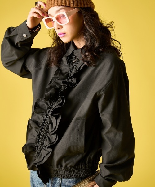 ジップを縁取る大胆なフリルディテール。 エッジの効いたモード感とストリートの遊び心を両立させた 今季の主役アウターです。 ■デザイン 視線を奪うフロントフリル、フロントジップに沿って贅沢に施されたフリルが、 顔周りに華やかさと立体感をプラス。 甘くなりすぎないよう、襟元は端正なシャツカラーで引き締め、 都会的でモードなバランスに仕上げました。 計算されたボリュームシルエット、身体を泳がせるゆったりとした身幅と、 ふんわりとした袖のラインが、ストリートらしい「抜け感」を演出。 裾のシャーリングゴムがシルエットにメリハリをつけ、 どんなボトムスとも好相性な丈感を実現します。 マルチな表情を楽しむ: ジップの開け具合で印象が激変。 フルジップで構築的なトップスとして、前を開けて軽やかな羽織りとして、 季節の変わり目に手放せない万能アイテムです。 ■素材 ストリートシーンに映える、 適度なハリ感と落ち着いた光沢のある綿ポリエステルのオックス素材を使用。 フリルの立ち上がりや袖のボリュームをきれいに出してくれます。 さらりとした質感で、インナーを変えることでロングシーズン快適に着用いただけます。 ■おすすめのスタイリング Street Mode Look:ワイドなバギーデニムを合わせた、王道のストリートスタイル。 足元にボリュームのある厚底サンダルやスニーカーを持ってくることで、 フリルの甘さをタフな印象で中和した、最旬のこなれ感が完成します。 Modern Lady Mood:Iラインマキシワンピースにさらりと羽織って。 縦長のシルエットにブルゾンのボリュームが加わることで、スタイルアップ効果も抜群。 サングラスやキャップを添えて、遊び心のあるモードスタイルを楽しんで。 Mixed Avant-Garde:リボン付Aラインサテンスカートやレースパンツを合わせた、 異素材のコントラストを楽しむ上級者コーデ。 上下のトーンを合わせることで、個性的なディテール同士が共鳴し、 洗練された都会的なオーラを放ちます。 <仕様> 前ファスナー 袖口ボタン開き 裾部ゴム入 透け感:なし 伸縮性:なし 生地の厚み:普通 光沢感:なし ポケット:あり(前2つ) 季節:春・夏向き シルエット:普通 <洗濯方法> 洗濯機OK ネット使用 <対応サイズ> M :バスト:79~90/ウエスト:64~69/ヒップ:91~95 L :バスト:86~94/ウエスト:69~77/ヒップ:92~100 LL :バスト:93~101/ウエスト:77~85/ヒップ:97~105 3L :バスト:100~108/ウエスト:85~93/ヒップ:102~110 4L :バスト:107~115/ウエスト:93~101/ヒップ:107~115 5L :バスト:114~122/ウエスト:101~109/ヒップ:112~120 ※こちらはヌードサイズです。 ※平置きのアイテムサイズとは異なる計測方法となりますのでご了承ください。 #ゆったり#体型カバー#二の腕カバー #大きいサイズ#プラスサイズ#大きいサイズレディース #M#L#LL#3L#4L#5L 【気になる商品はお気に入り登録がおすすめ】 ▼商品のお気に入り登録 完売カラーの再入荷通知や、ラスト1点の通知、セールの通知などお得な情報が受け取れます。 ▼ブランドのお気に入り登録 新商品や再入荷など、ブランドのお得な情報をいち早く受け取ることができます。 【GEVS.(ジェイヴィス)】 ヴィンテージSHOPのdead stockの中から宝物を探すようなワクワク感を。 GEVS.は一目惚れするアイテムと気分が上がるトレンドのスタイリングがいっぱいの空間を提供します。 ▼公式Instagram @gevs._officialsite