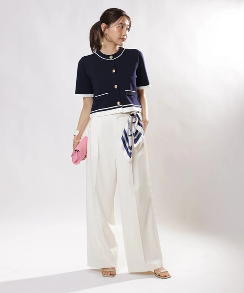 取り外し可能なスカーフがセットになったセミワイドパンツ。 ほどよく広がるシルエットが脚のラインをすっきりと見せ、きれいめにもカジュアルにも対応します。 コンパクトなニットやTシャツをインしてバランスよくまとめたり、ブラウス合わせで上品に仕上げたりと、着こなし次第で印象を変えられる一本です。 【ご注意】 ※撮影照明の関係により、実際の商品と色味が異なって見える場合がございます。 また、パソコン・スマートフォンなどの環境により、製品と画像のカラーが異なる場合もございます。 予めご了承ください。 ※商品画像はサンプルのため、色味やサイズ等の仕様に変更がある場合がございますので、予めご了承ください。