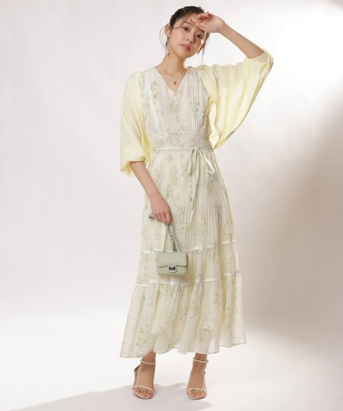 繊細なブーケ柄が華やぎを添えるプリントワンピース。 ウエストリボンでメリハリのあるシルエットを演出し、揺れ感のあるスカートが女性らしさを引き立てます。 一枚で上品に着こなすのはもちろん、カーディガンを羽織ってきれいめにまとめたり、フラットサンダルで軽やかに仕上げたりと、季節に合わせたスタイリングが楽しめる一着です。 【ご注意】 ※撮影照明の関係により、実際の商品と色味が異なって見える場合がございます。 また、パソコン・スマートフォンなどの環境により、製品と画像のカラーが異なる場合もございます。 予めご了承ください。 ※商品画像はサンプルのため、色味やサイズ等の仕様に変更がある場合がございますので、予めご了承ください。