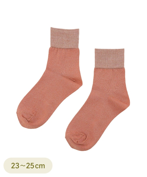●抗菌防臭加工が施された靴下。●暑くなるこれからの季節にも安心です◎●キラキラとした上品なラメで、どんなコーディネートにも合わせやすいです。《ご使用上の注意》●繊細な編み方になっております。台紙を抜かれる際と、ご着用の際は爪などで引っ掛けないようご注意ください。●この素材は摩擦(特に湿った状態での摩擦)や、汗や雨などで濡れた際、他の衣料や下着に色が移ることがありますので、ご注意ください。●濡れたまま放置しないでください。●伸縮性に富み、フィット性に優れた糸を使用している為、左右の寸法が異なる場合がありますが、充分伸びますので着用上問題はありません。●ラメを使用している商品は肌に刺激を与える可能性があります。着用中に赤み、かゆみ等があらわれた場合には、すぐにご使用をおやめください。