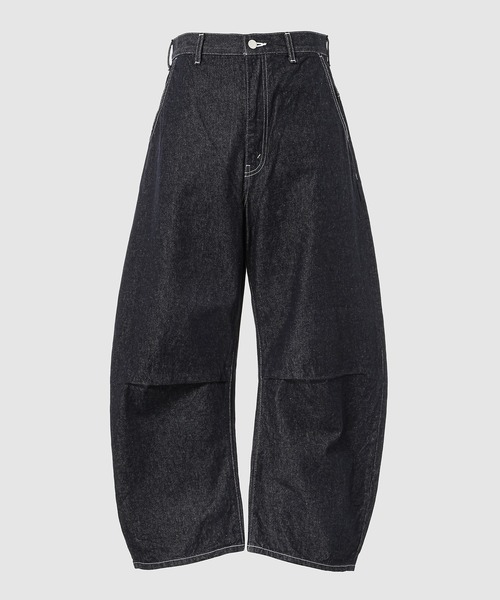 インディゴデニムを使用したパンツは通常の5ポケットとは異なるコム デ ギャルソン・オムらしいデザインにて組作られた一本。縦長にデザインされたフロントポケットや、内側ヒザ部分にタックを加える事で生まれるカーブした独自の立体的なシルエットなど通常の5ポケットデニムパンツだけでも他とは異なる個性を十分感じる存在となっています。全体的にウォッシュ加工が施されており洗いによるシワ感も特徴。履き込む事にエイジングが楽しめる一本です。 These pants are made from indigo denim and feature a distinctive Comme des Garçons Homme design that differs from the usual five-pocket style. The vertically designed front pockets and the unique curved, three-dimensional silhouette created by adding tucks to the inside of the knees give these pants a distinctive character that sets them apart from the usual five-pocket denim pants. The overall design is washed, giving them a distinctive wrinkled look. Enjoy the aging process that comes with wear.