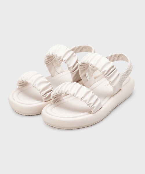 フリルの様なギャザーベルトデザインがポイント! 高すぎない厚底ソールで安定感も◎なカジュアルサンダル 【デザイン】 ・アンクルストラップサンダル ・程よい高さの3cmソール ・厚底ソールは高過ぎず、安定感があります。 ・かかとのストラップで足首が固定されるので歩きやすい ・アッパーベルト部分はギャザーデザインかつ、程よくパフィー感のあるデザイン ・カジュアルになり過ぎずモードな印象で、デイリーに活躍する1足 ・ソックスと合わせるコーデもおすすめ 【素材】 セミマットなスムース調の合皮素材を使用。 中敷きには低反発クッションを敷いており歩きやすさも◎です。 ※照明の関係により、実際よりも色味が違って見える場合があります。また、パソコン・スマートフォンなどの環境により、若干製品と画像のカラーが異なる場合もございます。 店舗へのお問い合わせ商品番号:C71-25041 ●製品寸法: 02(23.0~23.5cm):ヒール高3.5cm 幅9.5cm プラットフォーム2.5cm 03(24.0~24.5cm):ヒール高3.5cm 幅10cm プラットフォーム2.5cm 備考:重量:03(24.5cm)片足約245g