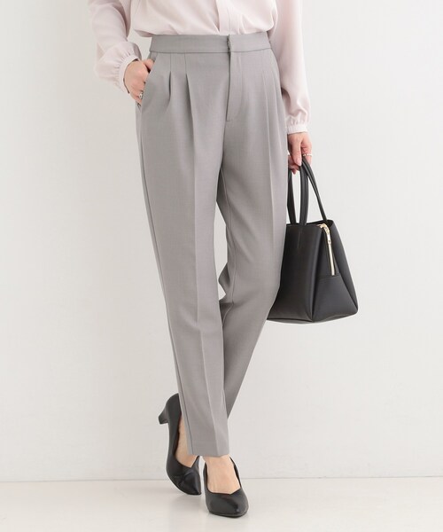 【デザイン】 2タック入りのテーパードシルエットパンツ。 フロントウエストは、トップスをインしてもすっきり見えるデザインです。 【スタイリング】 同素材展開のC62-45311、C62-45312とセットアップで着用可能。 ベーシックなテーパーとシルエットなのできっちり見せたいシーンに最適なアイテムです。 【素材】 ナチュラルストレッチの効いたしなやかなツイル素材。 嬉しい機能付き。 ・マシンウォッシャブル ・UV ・ナチュラルストレッチ ・イージーケア 【仕様】 ・ポケット数:横×2 後ろ(ダミー)×2 ・前ファスナー ・ウエスト後ろゴム ・裏地なし ※この製品は、太陽光線中の紫外線(UV)を通しにくくします。この効果は永久的ではありません。 ※照明の関係により、実際よりも色味が違って見える場合があります。また、パソコン・スマートフォンなどの環境により、若干製品と画像のカラーが異なる場合もございます。 モデル情報:身長166cm B80 W59 H85 着用サイズ:02(M) 店舗へのお問い合わせ商品番号:C62-65313 ●製品寸法: 01(S):W66cm H100cm 股下67cm 前股上28cm 渡り幅31cm 裾幅14cm 02(M):W69cm H103cm 股下68cm 前股上28cm 渡り幅32cm 裾幅15cm 03(L):W72cm H106cm 股下69cm 前股上29cm 渡り幅33cm 裾幅16cm 04(LL):W75cm H109cm 股下70cm 前股上29cm 渡り幅35cm 裾幅17cm 10(SS):W63cm H97cm 股下66cm 前股上27cm 渡り幅30cm 裾幅13cm 備考: