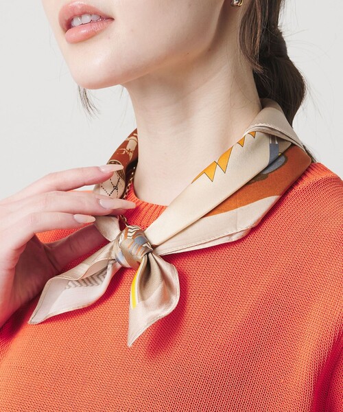 上質な素材感にヴィンテージライクなモチーフでコーディネートに華やかさを添えるスカーフ ■デザイン レトロなムードを感じる配色が目を惹く馬柄のシルクスカーフ。 馬年にもぴったりなトレンドアイテムです。 やや小さめなサイズ感で、首元に巻いたり、バッグの持ち手にアクセントとして付けるのもおすすめ。 カジュアルからきれいめコーデまで品のある印象をプラスしてくれる一品です。 ■コーディネート クラシカルなモチーフは、あえてカジュアルルックに取り入れるのが旬。 Tシャツやスウェットにデニムを合わせたデイリースタイルも、スカーフを加えるだけでこなれた印象に導きます。 【注意事項】 ※商品に「取り扱い上の注意書き」、「洗濯表示」がございます場合は、使用前に必ずご確認ください。 ※商品画像は、光の当たり具合やパソコンなどの閲覧環境により、実際の色味と異なって見える場合がございます。あらかじめご了承ください。 ※商品の色味の目安は、商品単体の画像をご参照ください。 店舗へお問い合わせの際は、全国のBEAUTY&YOUTH各店舗まで下記の品名/品番をお申し付けください。 品名:BY SLK HORSE SCF 品番:18366000007