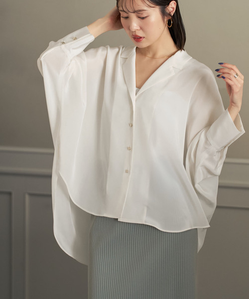 ◆昨年も大人気だった「ゴールドボタンニュアンスシャツ」がよりさらっとしたタッチのデシン素材に変更し登場! ※商品番号24050240104020・25050240108020の素材替え商品です。 マリンテイストなムードをゴールドボタンで表現したサマーシャツ。 素材をデシン素材に変更したことで、よりエアリーでさらっとしたタッチ且つ女性らしい繊細な透け感を持った仕上がりに。 ドルマンスリーブにして後ろ身頃の分量を多めに仕立てたことで、さらりと1枚で着てもニュアンスたっぷりの旬な表情に決まります。 丈感は後ろが長めで歩くとふわっと広がるシルエットも素敵。フロントはやや長めに修正しており、フロントインも可能に。 1枚着としても十分着映えを叶えつつ、オーバーなサイジングなのでキャミソールやワンピースの上に羽織るように着用するのもお勧めです◎。 ********************** 透け感:あり 裏地:なし 伸縮性:なし 光沢感:なし 生地の厚さ:普通 ********************** 【スタッフ着用コメント】 年齢20代/身長:155cm/体型:やや細身/普段サイズ: 34~36 /着用サイズ:フリー サイズ感:身体が泳ぐ、ゆったりしたサイジング。 身幅が広めで締め付けがないので、リラックスして着用できます。 着丈は前は骨盤にかかるくらい、後ろはお尻が隠れるくらいで眺めです。 素材感:さらりとしてドライタッチな風合い。 着心地:軽やかな着心地且つ、たっぷりしたサイジングで洋服と身体の間に隙間ができるので、風通しも良いです。 お仕事に対応できるキレイめ素材も嬉しい。 ********************** ※取り扱いについては、商品についている品質表示でご確認ください。 ※こちらの商品は、NOBLEでの取り扱いになります。 直接店舗へお問い合わせの際はNOBLE店舗へお願い致します。 ※照明の関係により、実際よりも色味が違って見える場合があります。 またパソコン・スマートフォンなどの環境により、若干製品と画像のカラーが異なる場合もございます。 ※商品の色味は、商品アップ画像をご参照ください。 ホワイト着用スタッフ身長:155cm 着用サイズ:フリー ブラウンD着用スタッフ身長:164cm 着用サイズ:フリー モデルサイズ:身長:163cm 着用サイズ:フリー 本体:手洗い可能