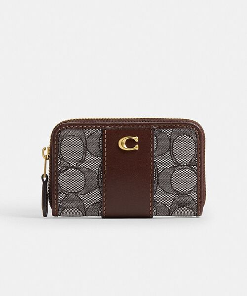 エッセンシャル スモール ジップ アラウンド カード ケース・シグネチャー ジャカード ・ シグネチャー ジャカード、リファインド カーフ レザー ・ カードスロット x 2 ・ 仕切りポケット x 3 ・ 外側にポケット ・ ジップアラウンド開閉 ・ 縦7cm x 横11cm x マチ2cm ・ フラグメントケース、ミニウォレット キャッシュレス派にとって財布代わりにもなる、手のひらサイズのカード ケースです。 リファインド カーフ レザーとシグネチャー ジャカードで作り上げました。薄型ながら、開くとマチが広がるジップアラウンド開閉デザインです。 収納構造は? カードスロット2つと仕切りポケット3つを備え、カードやキャッシュをすっきり整理できます。外側にはポケットも配置しています。 素材の特徴は? 46% リサイクル ポリエステルと54% リジェネラティブ コットンをブレンドしたシグネチャー ジャカードを使用。立体的なシグネチャー パターンが高級感を引き立てます。 どんな使い方がおすすめですか? 衣類のポケットに収まるサイズ感で、必要なものをコンパクトに持ち運べます。 ※ご使用のパソコンやスマートフォンの画面設定や機種により実際のカラーと異なって見える場合がございます。 ※カラー名は管理用の表記であり、タグの表記と異なっております。 【COACHについて】1941年にニューヨークで創立したグローバルファッションブランドです。美しさと機能性を兼ね備えたコーチ製品には、熟練したクラフトマンシップが細部にまでに行き届き、最高の使い心地とスタイルをお届けします。ジェンダーレスに使えるデザインも豊富に揃え、ギフトでもたくさんのお客様にお選びいただいています。クリエイティブ・ディレクターのスチュアート・ヴィヴァースのビジョンと、私たちのホームタウンであるニューヨークの、誰をも受け入れる姿勢(インクルーシブ)、そして勇気ある精神にインスパイアされ、誰もが自分らしくいられるように、永く愛される美しいものづくりを行います。