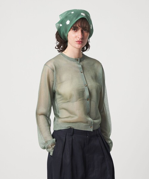 光沢のあるシアーファブリックでお作りしたカーディガン。 シャツやTシャツ、キャミソールの上からレイヤードすることで、カジュアルなスタイルも、抜け感のあるセンシュアルな雰囲気に。 軽やかな艶感を生み出し、奥行きを感じるスタイルを演出します。 共地のビスチェとアンサンブルでの着用も素敵です。(対象品番:86181000007) ・ブラックカラーはカーディガンのみ展開 ============================ 裏地:なし 透け感:あり 伸縮:ややあり 光沢感:あり ============================ 【注意事項】 ※商品に「取り扱い上の注意書き」、「洗濯表示」がございます場合は、使用前に必ずご確認ください。 ※商品画像は、光の当たり具合やパソコンなどの閲覧環境により、実際の色味と異なって見える場合がございます。あらかじめご了承ください。 ※商品の色味の目安は、商品単体の画像をご参照ください。 店舗へお問い合わせの際は、全国の6(ROKU)各店舗まで下記の品名/品番をお申し付けください。 品名:6 PE SHER CD** 品番:86281000012