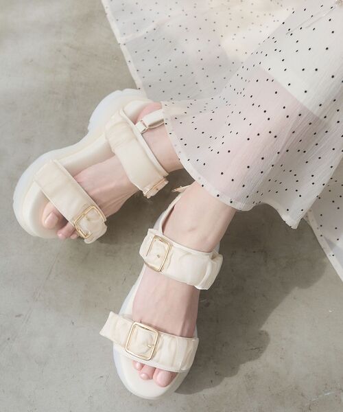 可愛いだけじゃない、さらに使いやすく。 履き心地とバリエーションを追求したMAJESTIC LEGONのシューズ&バッグメインのGOODSライン 「Mimi」(ミミ) 昨年大人気だったジェリースポサンがアップデート。 きらめきを添えたビジューの新色が登場! ■デザイン シャイニーで透け感のある素材が夏らしいダブルベルトサンダル。 昨年好評だった無地デザインに加え、今期はビジュー付きの新色2色をプラス。 繊細に散りばめたビジューが光を受けてきらめき、足元に華やかさをプラスします。 立体感のあるギャザーデザインとゴールドバックルで、スポサンながらフェミニンな印象に。 ダブルベルトとバックストラップのマジックテープ仕様でフィット感も抜群◎ ゼリーのような透け感ラバーソールは滑りにくく、安定感のある履き心地を実現。 ☆こだわりの履き心地☆ ・軽量設計で長時間歩いても楽ちん。 ・マジックテープ仕様で着脱もスムーズ。 ・クッション性のあるインソールで快適な履き心地。 ・滑りにくいアウトソールで安定感◎ ■サイズ感 甲幅・甲高の方も履いて頂きやすいサイズ感です。 通常と同程度のフィット感で、普段のサイズをおすすめします。 MAJESTIC LEGONシューズ対応サイズ Sサイズ 約22.0~23.0cm 重量490g Mサイズ 約23.0~23.5cm 重量500g Lサイズ 約23.5~24.0cm 重量510g XLサイズ 約24.0~24.5cm 重量520g ※素材の特性により若干差異が生じる事がございます。 ■スタイリング 浴衣や水着合わせにもぴったりな映えデザイン。 お祭りやフェス、旅行などたくさん歩くイベントシーンにもおすすめです。 ミニ・ロングどちらにも合わせやすく、デニムとの相性も◎ ソックス合わせでロングシーズン楽しめます。 ■商品のお気に入り登録 再入荷通知や残りわずか、お得なプライスダウンの情報も受け取ることができます。 ぜひご登録ください◎ ※サンプルでの撮影の為、製品と仕様が異なる場合がございます。 ※商品の色味は、撮影場所や光のあたり具合などにより色味が違って見える場合がございます。 また、お客様のお使いのモニター環境などにより色味が異なって見える場合がございます。 予めご了承の上ご注文下さい。 ※こちらはWEB限定商品となります。