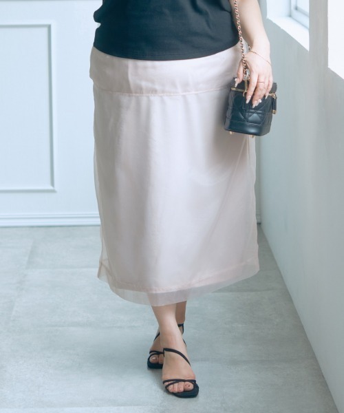 【らめちゃんコラボ】 透け感のある柔らかいオーガンジースカートと、タイトスカートの2点セット。 ■デザイン ・軽やかさと安心感を両立し、気になるヒップや太ももラインを自然にカバー。 ・縦ラインを強調することにより、すっきりとしたIラインシルエットに。 ・スカート2点とも丈を敢えて変えているので、レイヤードスタイルでの足元のオーガンジーの透け感を楽しめます。 ・動きに合わせて揺れるオーガンジー素材が、重くなりがちなコーデを一気に華やかにしてくれます。 ■素材 柔らかく透け感のあるオーガンジー素材と軽やでシワになりにくい素材 ■おすすめのスタイリング 透明感のあるオーガンジー素材とのレイヤードコーデはシンプルなトップス合わせでも華やぎます。 ブラウスで綺麗めコーデにも合わせやすいのでオン、オフ問わずに楽しめる2点セットです。 単体使いもできるので着回し力抜群のアイテムになります。 <仕様> ポリエステル100% 後ファスナー 後スリット この商品は2点同サイズのみで販売します。 透け感:あり(オーバースカート) 伸縮性:なし 生地の厚み:普通 光沢感:あり?(オーバースカート) 裏地:なし ポケット:なし ウエスト:後ゴム(タイトスカート) 季節:春・夏・秋向き シルエット:普通 <洗濯方法> 洗濯機OK ネット使用 --------------------------------------------- ■ らめちゃん×nissen concept 着るだけで、"良い女"。 思わず振り返られるような、大人の余裕と 女性らしさを引き出す、洗練された都会派スタイル。 日常にそっと華を添えてくれる、「着るだけで自信をくれる」をテーマに 一着で主役になれるようなお洋服を展開します。 普段使いはもちろん、デートや女子会、 ちょっとした特別なイベントにもぴったりで、 着方次第でちょっぴりセクシーさも兼ね備えた、 らめちゃんのこだわりがたくさん詰まったお洋服です。 --------------------------------------------- ▼らめちゃん紹介 Instagramアカウント @ramerameramechan 大きいサイズ・ぽっちゃり女子向けのプチプラ高見えコーデを発信するインフルエンサー。 体型にとらわれないおしゃれの楽しみ方やスタイルアップ術が好評。 同じ悩みを持つ女性たちから厚い支持を集めています。 B/115 W/108 H/125 ▼ JMETT 私 数ある宝石(テイスト)の中から、自分が本当に欲しいものをセレクト、フィットするアイテムをご提案いたします。 ▼公式Instagramはこちら @jmett_official --------------------------------------------- <対応サイズ> M :ウエスト:64~69/ヒップ:91~95 L :ウエスト:69~77/ヒップ:92~100 LL :ウエスト:77~85/ヒップ:97~105 3L :ウエスト:85~93/ヒップ:102~110 4L :ウエスト:93~101/ヒップ:107~115 5L :ウエスト:101~109/ヒップ:112~120 ※こちらはヌードサイズです。 ※平置きのアイテムサイズとは異なる計測方法となりますのでご了承ください。 #ゆったり#体型カバー#二の腕カバー #大きいサイズ#プラスサイズ#大きいサイズレディース #M#L#LL#3L#4L#5L 【気になる商品はお気に入り登録がおすすめ】 ▼商品のお気に入り登録 完売カラーの再入荷通知や、ラスト1点の通知、セールの通知などお得な情報が受け取れます。 ▼ブランドのお気に入り登録 新商品や再入荷など、ブランドのお得な情報をいち早く受け取ることができます。
