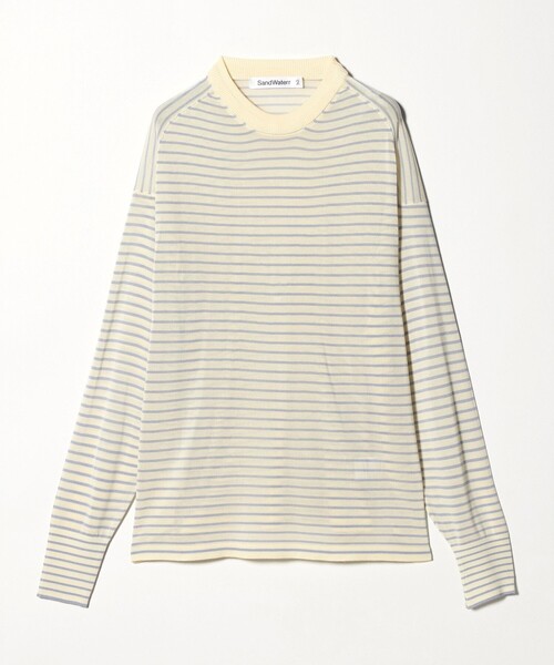 ミックス糸で編み立てた、オリジナルボーダーパターンのセーター。 襟元は針抜きリブ仕様で、さりげないアクセントをプラスしています。 裾にはスリットを施し、サイドにはベンチレーションをイメージした細かなアイレット(穴)ディテール。 適度なゆとりをもたせたリラックスシルエットとベーシックなカラーがデイリーに取り入れやすい一着です。 ・メーカー品番:SW-K0601 <SandWaterr(サンドウォーター)> ”砂と水”、”乾きと潤い”といった相反する物を組み合わせる振り幅のあるデザインをテーマに、 デザイナー管野氏 独自の解釈でコレクションを展開しています。 【注意事項】 ※商品に「取り扱い上の注意書き」、「洗濯表示」がございます場合は、使用前に必ずご確認ください。 ※商品画像は、光の当たり具合やパソコンなどの閲覧環境により、実際の色味と異なって見える場合がございます。あらかじめご了承ください。 ※商品の色味の目安は、商品単体の画像をご参照ください。 店舗へお問い合わせの際は、全国のUNITED ARROWS各店舗まで下記の品名/品番をお申し付けください。 品名:SandWaterr 13 RESEARCHED 品番:55695000356