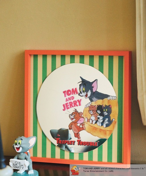大人気アニメーションシリーズとのコラボレーションアイテムが登場! トムとジェリーのアートを大胆に施した、壁に飾っておくだけでお部屋が華やぐスクエア型のミラー。 爽やかなグリーンのストライプ柄を背景に、トムとジェリー、そして3匹の子猫たちが描かれた遊び心満載のデザイン。 オレンジ色のフレームがアクセントになり、ヴィンテージアメリカンな雰囲気を演出してくれます。 毎日のメイクタイムや身だしなみチェックがもっと楽しくなりそう。 自分用にはもちろん、インテリア好きの方へのギフトにも喜ばれること間違いなしのアイキャッチなアイテムです。 【トムとジェリー】 世代を超えた名作として世界中の人々から愛され続けている「トムとジェリー」。ネコのトムとネズミのジェリーが、毎回あらゆる追いかけっこを繰り広げるドタバタコメディが大人気のアニメーションシリーズです。人気作品のポスターや名シーンを抜き出してビンテージ調に仕上げた niko and ... の特別なコレクションです。 <お取扱い上の注意> ・本製品は一点ずつ仕上がりに個体差があります。製品の特性としてご理解ください。 ・本製品を掛ける壁の材質・構造をご確認の上、製品の重さに耐えられる掛け金具をご使用ください。 ・本製品を取り付ける際は必ず垂直な壁に取り付け、確実に製品が掛かっていることを確認してください。 ・取り付けが不十分な場合、少しの衝撃で落下し、ケガや破損の原因となりますのでご注意ください。 ・直射日光や高温多湿な場所を避け、小さなお子様の手の届かないところで使用、保管してください。 ※サンプルにて撮影をしておりますので、実際の商品とは仕様や加工・サイズ等が若干異なる場合がございます。 ※屋外の光や照明の当たり具合で、実物と色味が異なって見える場合がございます。詳細画像の色味をご確認ください。 なお、商品の色や質感を出来るだけ忠実に再現するよう心掛けておりますが、パソコンなどの環境により、実物と若干異なる場合がございます。