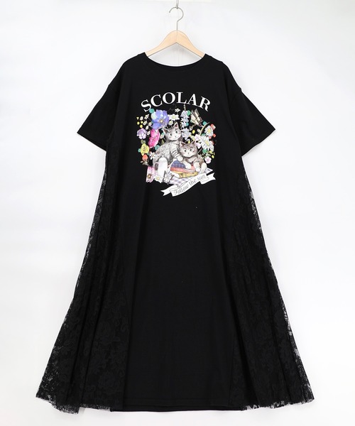 + ScoLar 商品 + 【春らしい華やかなピクニックプリントワンピース】 ・のんびりくつろぐネコを、ティーポットや本・花々が囲む華やかプリント ・(07)グリーンレース切替/(09)同色ブラックレース切替 ・肌あたりの良い天竺生地に、両脇の軽やかなレースでガーリーな印象に♡ ・中に柄物シアーインナーを入れたレイヤードスタイルもオススメ ●model:菜摘 164cm/64.5inch ●model着用:07(杢グレー) (着用商品はサンプルの為、実際のデザインと変更がある場合がございます) ーーーーー 裏地:なし 透け感:(本体)やや透け感あり・(レース部分)透け感あり 生地の厚さ:やや薄手 生地感:やわらかめ 伸縮性:ややあり ポケット:なし ーーーーー ※ レース使用 取り扱いのご注意: ※この製品は摩擦や水濡れにより色落ちにすることがありますのでご注意ください。 ※この製品は生地独特な風合いを出すために、製品加工してあります。(製品は1点、1点多少表情が違います) ※この商品はデリケートな素材を使用しております。糸及び編組織の性質上、引っ掛け・引っ掛かりやすい為、着脱時や取り扱いにご注意下さい。