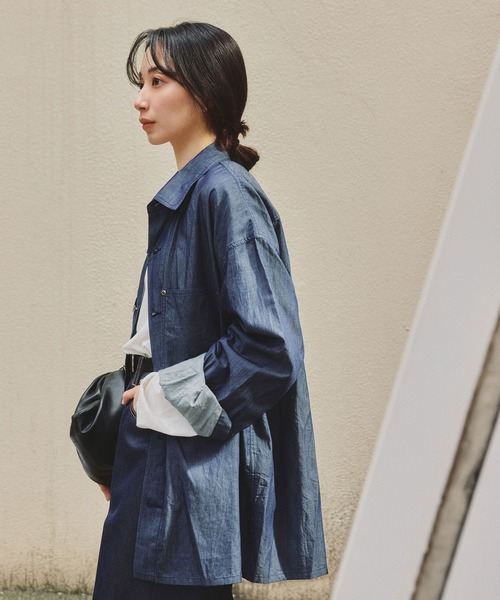 経年変化を楽しめる、大人のデニムシャツ。 ライトオンスの為、ロングシーズン着用いただけます。 【素材】 ・超軽量ながらインディゴ染料で仕上げた、経年変化を楽しめるライトオンスデニム ・60番手の糸を使用した3.25オンス素材にワンウォッシュタンブラー加工を施すことで、デニム特有の表情を残しつつ、薄く柔らかでしなやかな着心地を実現しました 【デザイン】 ・オーバーサイズでありながら、スマートに着用できる羽織りシャツ ・インナー使いも可能な絶妙なアームホール設計により、レイヤードスタイルにも対応します ・裾にはスリットを入れることで軽やかな印象に仕上げ、タックアウト時もシャープなシルエットを演出 ・さらに、コントラストステッチやリベット補強、ドーナツボタンなど、デニムシャツならではのディテールを採用しています 【推奨サイズ】 サイズM:身長~175cm サイズL:身長176cm~ ※標準体型を基にした目安になります。 ----------------------- 裏地:なし 光沢感:なし 透け感:なし ポケット:あり 伸縮性:なし 生地の厚さ:薄手 -----------------------
