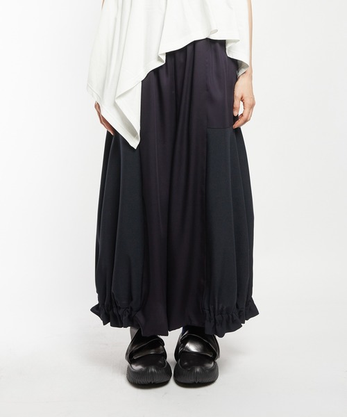 2026 SPRING&SUMMER COLLECTION ■design ・切替と異素材の組み合わせで魅せるパンツ。 ・裾にギャザーを施し、外側に膨らみを持たせたシルエット。 ・幅があるため、ボディラインをカバーできます。 ・異素材と組み合わせることで、奥行き感のあるアイテムに。 ・ウエストは総ゴムでリラクシーに着用可能。 ■fabric ・滑らかな肌触りや上品な光沢感があり、ひんやりとした涼感があるテキスタイル。 ・サスティナブルな素材で柔らかく、ドレープ性があり落ち感が綺麗なことが特徴です。 ■coordinate ・カットソーと合わせてカジュアルにラフコーデ。 ・コクーンシルエットとの相性◎ ‥‥‥‥‥‥‥‥‥‥‥‥‥‥‥‥ 厚さ:普通 透け感:なし 伸縮性:なし 光沢感:あり ポケット:あり 裏地:なし ※詳しいお手入れ方法は商品タグをご参照ください。 ‥‥‥‥‥‥‥‥‥‥‥‥‥‥‥‥ 《お知らせ》 ・商品画像はご覧のモニター環境により、実物の色味と多少異なる場合がございます。予めご了承ください。 ・「商品のお気に入り登録」で再入荷・値下げ・在庫1点などの通知を受け取ることができます。 ・「ブランドのお気に入り登録」で新商品や再入荷など、お得な情報を受け取ることができます。 ※他のキャンペーンにより、期間中に価格が変動する場合があります。 ※セールは予告なく終了させて頂く場合もあります。