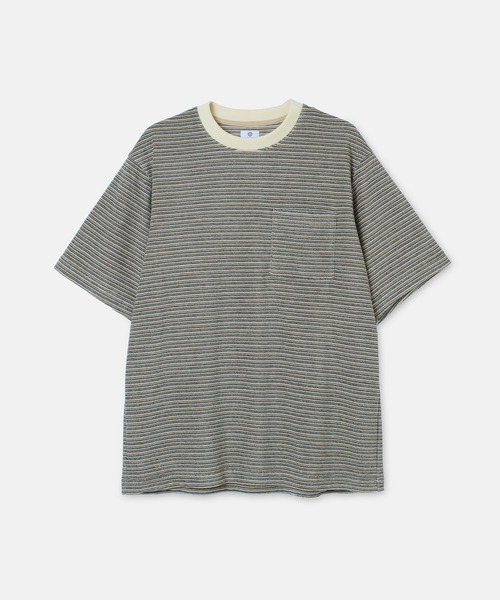 SEAGREEN(シーグリーン) PILE BORDER T-SHIRT ゆったりとしたシルエットでリラックス感のあるボーダーTシャツ。 シンプルなディテールで、どんなスタイルにも合わせやすいミニマルな仕上がり。 6色の糸を使いを1列ずつ絶妙な配色で組み合わせたオリジナルカラー。 サンドイッチパイルと言われる三重構造で、他のパイル素材とは違うソフトで上質な肌触り。 [注意] ※商品の画像はサンプルとなりますため実際の製品とは仕様や加工が異なる場合がございます。 【SEAGREEN/シーグリーン】 DOWN TO EARTH「日常を思考する」 日常のできごと1つ1つをきちんと考える。朝の気配、服の心地、鳥の声。 モノづくりを考える、服を楽しむ、素材にこだわる、技法にこだわる、フォルムにこだわる。 なんとなくよかったイメージから、離脱する。 現地にいって、森をみよう。バスにのって、旅にでよう。 地に足を付け、自然を全身で感じよう。それこそが、私たちのクラフトマンシップ。