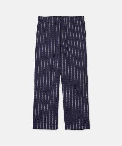 SEAGREEN(シーグリーン) ANCHOR STRIPE PANTS 快適さとスタイルを両立させた、リラックスフィットパンツ。 シンプルなデザインだからこそ、全体に施されたプリント柄が際立つデザイン。 伸縮性のあるウエストには、内側に調節可能なコットンドローコードを備え、快適なフィット感を提供。 プリントには伝統的な抜染技法を採用することで、自然な色褪せ感や深みのある柄が表現され、一点一点に温かみのある風合いに。 [注意] ※商品の画像はサンプルとなりますため実際の製品とは仕様や加工が異なる場合がございます。 【SEAGREEN/シーグリーン】 DOWN TO EARTH「日常を思考する」 日常のできごと1つ1つをきちんと考える。朝の気配、服の心地、鳥の声。 モノづくりを考える、服を楽しむ、素材にこだわる、技法にこだわる、フォルムにこだわる。 なんとなくよかったイメージから、離脱する。 現地にいって、森をみよう。バスにのって、旅にでよう。 地に足を付け、自然を全身で感じよう。それこそが、私たちのクラフトマンシップ。