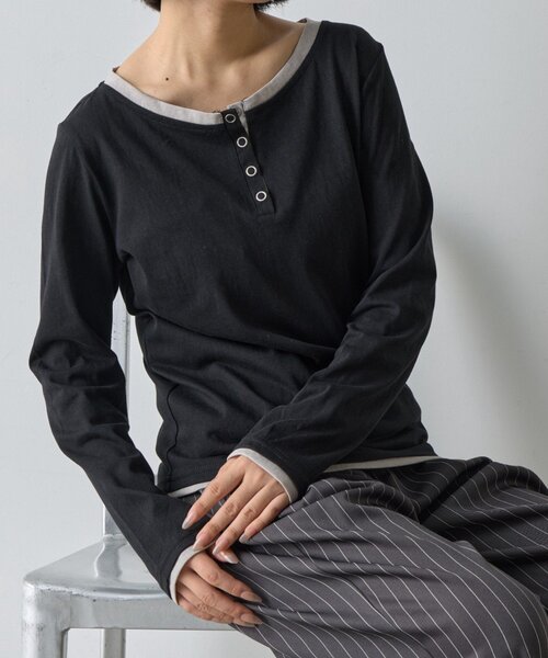 一枚で決まるレイヤード風ロンT 【POINT】 ・レイヤードしているように見えるデザインロンT ・一枚でこなれたスタイリングが完成 ・デイリーに使いやすい柔らかな素材感 ・ヘンリーネック仕様で抜け感のある印象に◎ 【STYLING】 ・デニムやカーゴなどカジュアルボトムと好相性 ・デザイン性のあるトップスなのでシンプルなボトム合わせがおすすめ 【アフターケア】 ・手洗い可 ・乾燥機不可 ・アイロン(低温) ・ドライクリーニング可 ・ウエットクリーニング可 【KEYWORD】 #ヘンリーネック #レイヤード風 #レイヤードライクヘンリーネック #ヘンリーネックロンT #レイヤードスタイル ---------------------------------------------- 透け感:あり 裏地:なし 伸縮性:なし 光沢感:なし ---------------------------------------------- ※商品画像は着用イメージです。 光や角度により、実物と色味が異なる場合がございます。 また表示のサイズ感も実物とは若干異なる場合もございますので、 ご了承ください。 ※着用、お取り扱いの際は、商品についている品質表示と アテンションタグを必ずご確認ください。 ---------------------------------------------- 【-goocy-】 いつもの着こなしに、ユースカルチャーやストリートシックの トレンド要素を取り入れた [denim] [street] [chic] [unisex] をkey wordに スタイリングを提案します ---------------------------------------------- 気になるアイテムは【お気に入り登録】がおすすめ! ▽商品のお気に入り登録 完売カラーの再入荷やラスト1点の通知などを受け取ることができます。 ▽PALCLOSET又は、ZOZOTOWNでブランドをお気に入り登録 新商品やクーポン、セール情報をいち早く受け取ることができます。