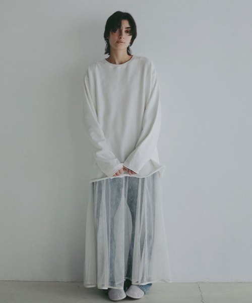 繊細なラッセルレースが軽やかに揺れ、スタイリングに奥行きをもたらすシアーレイヤードキャミワンピース 本体にはポリエステルのラッセルレースを使用し、華奢でありながらもほどよいハリと落ち感を兼ね備えた素材感が特徴。 甘くなりすぎない柄に仕上げることで、大人の装いにも自然と馴染むバランスに整えています。 細巾レース部分にはナイロンを使用することで、繊細な表情と軽やかな透け感を際立たせました。 部分的にドット柄のシアー生地を組み合わせることで、さりげない素材コントラストと奥行きをプラス。 空気をはらむような軽やかさがあり、動きに合わせて柔らかく揺れる質感が魅力です。 華奢なストラップと胸元にあしらったレースディテールが、女性らしさをより引き立てる一枚。 スカート部分にはマチ切り替えを施し、歩くたびに広がる立体的なシルエットを構築しました。 透け感を活かしたレイヤード前提のデザインでありながら、甘さを抑えた柄行きと直線的なラインにより、モードな印象も感じさせる一枚に。 Tシャツやロングスリーブとのレイヤードはもちろん、パンツを合わせたスタイリングもおすすめ。 デニムやワイドパンツと重ねたカジュアルな着こなしや、シンプルなカットソーと合わせてレースの存在感を引き立てるスタイルなど、幅広いコーディネートが楽しめます。 日常の装いにさりげない華やかさを添える、スタイリングの主役にもアクセントにもなる一枚です。 ーーーーーーーーーーーーーーーーーーー 【洗濯表示】 液温は40℃を限度とし、手洗いによる洗濯処理が可能です 漂白処理はできません タンブル乾燥は出来ません 日陰のつり干しがよい 底面温度120℃を限度とし、アイロン仕上げができます 石油系溶剤又はデカメチルシクロペンタシロキサンによる弱いドライクリーニング処理ができます 非常に弱い操作のウエットクリーニングができます ーーーーーーーーーーーーーーーーーーー ▼商品のお気に入り登録 お気に入りアイテムの再入荷や残り1点の通知を受け取ることが出来ます ▼ブランドのお気に入り登録 新作アイテムの入荷や人気アイテムの再入荷、 タイムセールやクーポンなど、いち早くブランドのお得な情報を受け取ることができます ーーーーーーーーーーーーーーーーーーー ※画像の商品はサンプルです。 ※商品を使用前に、タグ等に記載されている「取り扱い上の注意書き」、「洗濯表示」を必ずご確認ください。 ※商品画像は、光の当たり具合やパソコンなどの閲覧環境により、実際の色味と異なって見える場合がございます。 ※商品の色味は、スタジオ撮影の画像をご参照ください。 ※着丈は弊社寸法方法によりネックポイントから採寸しております。