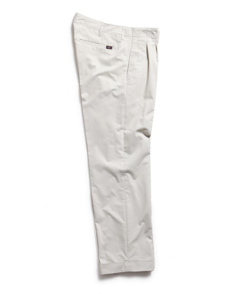 【ROTAR 2026夏物予約商品】接触冷感の機能素材を使用したツータックのチノ。 コットンにポリエステルを混紡しており、天然素材のナチュラルな風合いに接触冷感、吸水速乾を組み合わせています。 汗や湿気による不快感を軽減し、濡れても乾きやすく、接触冷感も備えているので足を通した際にサラッとした着心地を提供してくれます。 ストレッチ入りで動きやすく、ウォッシャブルなので汗をかく夏場に使いやすいのもポイントの一つ。 ウエストに2タックを入れたやや太めのクラシックなシルエットを採用し、ボリュームのある腰や太もも周りがリラックスした履き心地を提供してくれます。 裾に向かって少しだけテーパードをかけており、だらしなくなり過ぎない程よいサイズ感に拘ったオリジナルシルエットに仕上げています。 丈感は9~9.5分で裾をダブルにすることで日本人の体型にマッチしやすく、足長効果とスッキリした足元を演出してくれます。 ・接触冷感素材に関して接触冷感は温度の高い場所から低い場所へと移動する熱の性質を利用して、冷たさを感じさせています。 熱伝導率の高い繊維を使用することで体温を奪い、触れた時の涼しさや冷たさを感じさせる仕組みになっています。 ※冷たさを感じる冷感レベルには個人差があります。予めご了承ください。