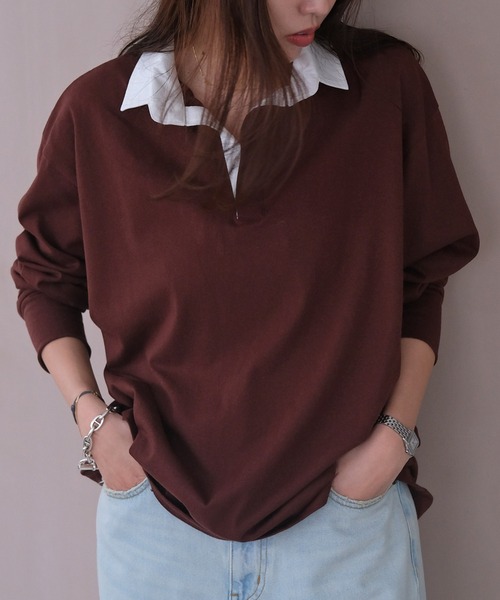 大人カジュアルをワンランクアップさせるこなれラガーシャツ オーバーサイズシルエットがメンズライクさとこなれ感を感じるラガーシャツ。 ラウンドした裾が絶妙なニュアンスを生み出し、カジュアルな中にも洗練された印象を与えてくれます。 襟と前立てがクリーンなアクセントに。 背面の襟元にはタブディテールがプラスされ、遊び心を感じさせます。 パンツスタイルはもちろん、スカートと合わせて大人のカジュアルスタイルが完成する一枚。通勤、通学はもちろん、デートや旅行、テーマパークなどのお出かけコーデにおすすめ。 --------------------------------- 透け感:なし 裏地:なし 伸縮性:あり 光沢感:なし 生地の厚さ:普通 --------------------------------- ▼お取り扱い上の注意 ※お手入れの際は商品の縫込みネーム・アテンションを必ずご確認ください。 家庭洗濯〇(30℃限度。洗濯機「最弱」) 漂白× タンブル乾燥× 日陰でのぬれ平干し アイロン〇(中温150℃まで) ドライクリーニング〇(弱い処理。石油系溶剤) ウェットクリーニング〇(弱い処理) ・長時間水に浸漬しないで下さい。 ・素材の性質上、多少収縮する可能性があります。洗濯後、形を整えて干して下さい。なお自動乾燥機(タンブラー)の御使用はおさけ下さい。 ・色落ちしますから他の物と分けて洗って下さい。 この商品は、摩擦(特に湿った状態での摩擦)や、汗や雨などで濡れた時は他の衣料や下着(特に白物)に色移りする場合がありますので、十分ご注意下さい。 クリーニングの際は、多少色落ちすることがありますので、出来るだけ単品洗いをおすすめします。 また、他の淡色物に色移りすることがありますので、すみやかに処理(脱水・乾燥)するようお願いいたします。 以上の点を十分ご留意の上、お取扱い下さい。