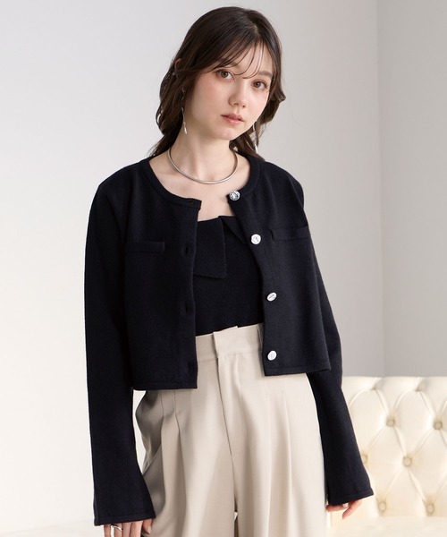 【Fabric】 柔らかく肌あたりの良いニット素材を使用し、快適な着心地を叶えるアンサンブル。 程よい厚みでロングシーズン着用でき、デイリーからきれいめシーンまで幅広く活躍します。 目面の整った上品な編地が、大人の女性らしい印象を引き立ててくれる一枚です。 【Detail】 同素材で仕上げたニットカーディガンとキャミソールのセットで、まとまりのあるレイヤードスタイルが楽しめるアイテム。 インナーのキャミソールは、胸元の折り返しデザインがポイントで、シンプルながらも立体感のある表情に。 カーディガンは袖口にカフスデザインを施し、程よいきちんと感をプラスしました。 シルバーのニュアンスボタンがアクセントとなり、コーディネートにさりげない華やかさを添えてくれます。 それぞれ単体でも着用できるため、着回しの幅が広がるのも魅力。 スラックスと合わせたきれいめスタイルはもちろん、スカートと合わせた女性らしい着こなしにもマッチする万能な一着です。 【Styling】 セットで着用すれば、上品で洗練されたレイヤードスタイルが完成。 キャミソールはジャケットのインナーとしても活躍し、すっきりとした女性らしい印象に仕上がります。 カーディガンはワンピースやデニムと合わせて、カジュアルダウンした着こなしもおすすめ。 デイリーからお出かけまで幅広く楽しめる、ワードローブに加えたいアイテムです。 ご使用上のお願い ·押し洗いをしてください。 ·つけ置き洗いはお避けください。 ·蛍光剤が入っていない洗剤を使用してください。 ·濃色品は白物と分別洗いをしてください。 ·洗濯で多少縮むことがあります。 ·形を整えてから干してください。 ·アイロンはあて布を使用してください。 ·他のものとの引っかかりにご注意ください。 ·形を整えてから干してください。 ·摩擦(特に湿った状態での摩擦)や雨·汗などで、他の衣料やバッグ等の周りのものに色移りすることがありますのでご注意ください。 ·着用中の擦れや摩擦により毛玉が生じることがあります。 【Elishe / エリシェ】 Elishe(エリシェ)は、“Elegant”と“she”をかけ合わせた造語。 ときめきをくれる一着が、自信に変わる。 何気ない日常も、思い出に変わる。 フェミニン×モードな感性で、大人の今に似合うスタイルを提案します。 ≪お買い物をお楽しみいただくために≫ ■商品のお気に入り登録 完売カラーの再入荷通知や、ラスト1点、セールの通知をお知らせいたします。 ■ブランドお気に入り登録 新商品や再入荷など、いち早くブランドの情報を受け取ることができます。