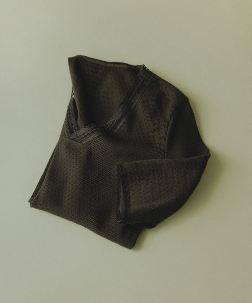 Angie La La Vintageコラボ。レースが映えるヴィンテージライクVネックプルオーバー■デザイン/シルエット 代々木上原のヴィンテージショップ、Angie La La Vintageとのコラボレーションプルオーバー。 1960~80年代のヨーロッパヴィンテージアンダーウエアを着想源に、 当時のディテールを再現しながら現代的なシルエットへアップデートしました。 こだわりのVネックラインがデコルテを美しく見せ、抜け感のある印象に。 レースには1845年創業の老舗、Cluny Lace Companyのリバーレースを使用し、上品で大人らしい雰囲気を演出します。 ■素材 和歌山・紀南莫大小(メリヤス)で編み立てたオリジナル変形リブ素材を採用。 1960~80年代のヴィンテージ編み地を再現したコットン100%生地は、 柔らかな肌あたりと身体のラインを拾いにくい着心地が魅力。 通気性・吸湿性にも優れ、デイリーに快適に着用できます。 ■コーディネート 一枚着としてはもちろん、同コレクションのキャミソールとのレイヤードスタイルもおすすめ。 ツヤ感ジャケットやリラックスパンツと合わせた大人の抜け感コーデにも活躍します。 ■Angie La La Vintage(アンジェ ララ ヴィンテージ)コラボアイテム一覧 ・商品番号:SHM36170 商品名:【Angie La La for SALON】コラボロゴビッグTEE ・商品番号:SHS36130 商品名:【Angie La La for SALON】GENTLE intimate レギンススカート ・商品番号:SHF36130 商品名:【Angie La La for SALON】GENTLE intimate レースキャミソール ・商品番号:SHM36130 商品名:【Angie La La for SALON】GENTLE intimate レースVネックプルオーバー ■モデル身長:166cm 着用サイズ:F ----------------------------- 裏地:なし 光沢感:なし 透け感:ややあり 伸縮性:あり 生地の厚さ:薄手 ----------------------------- ※画像の商品は光の照射や角度、お使いのモニター環境(パソコン・スマートフォン)により、 色味が違って見える場合があります。 ※商品の色味は、商品アップ画像をご参照ください。 【Angie LaLa】 代々木上原のヴィンテージショップAngie La La Vintage(アンジェ ララ ヴィンテージ)。 Angie La La Vintageのブランドコンセプトは、生のヨーロッパのヴィンテージ感を、そのままお客様に届けること。ロンドンのヴィンテージショップで働いていた バイヤーがイギリス、フランスで直接買い付けたヴィンテージクローズやアクセサリーをお届けするショップです。 1900年~1980年代を中心とした時代を飛び越え、ロマンの詰まったアイテムをセレクトしています。 オーナーは日本のセレクトショップで働いた後、渡英。ロンドンにあるファッションの学校へ通い、 古着屋で働きながら日本人に向けたオンラインショップを運営。帰国後、 ポップアップと オンラインストアで販売を行い、2019年に下北沢に実店舗をオープン。2022年、現在の代々木上原の店舗へ移転。