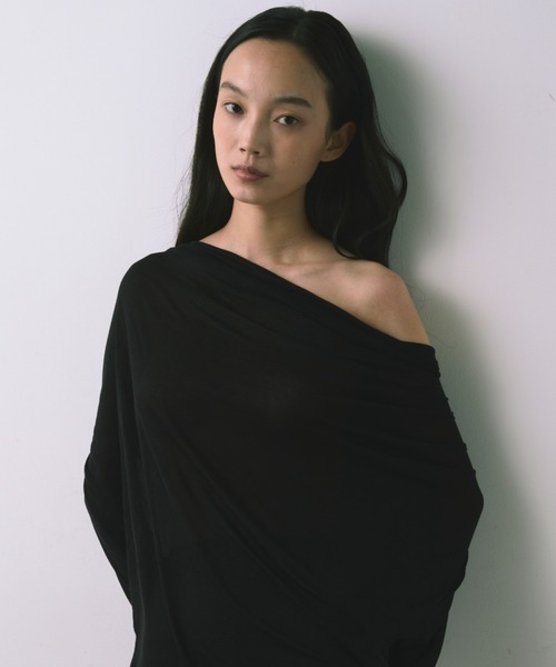 【エアリードレープシアートップス】 やわらかな落ち感が魅力の洗練されたドレープトップス。 ウエストと脇にゆとりを持たせ、自然に体型をカバーしながら華奢見えを叶えます。 ほどよいネックの開き具合で、デコルテを美しく女性らしく演出。 フロントのドレープは着こなし次第でワンショルダーにもアレンジ可能。 ヒップまで包み込む丈感で安心感があり、ミニワンピースとして一枚でさらりと着ても◎。 ブラックはモードで引き締め効果抜群。細身パンツやロングブーツと合わせて都会的に。抜け感と透明感をプラスするホワイトは。デニムやワイドパンツでクリーンな大人カジュアルに。 ベージュは柔らかなニュアンスで女性らしさを引き立てます。ワントーンコーデやシルバージュエリーと好相性。 KTWR62 中国製 素材:指定外繊維(テンセル)100% サイズ:F 丈:64cm 肩巾:52cm バスト:100cm 袖丈:60cm ー備考ー 伸縮性:あり 透け感:なし 〇〇〇●〇あり 生地の厚さ:薄い ●〇〇〇〇 厚い 洗濯:可 ウエットクリーニング:可 ー Attentionー ●着用中はバッグ・ベルト・アクセサリー等、表面の粗い ものとの摩擦、引っかけにご注意下さい。 ●濡れたまま長時間放置すると、色落ちの原 因となることがありますので速やかに乾かし てください。 ●湿った状態や着用時の摩擦により、他の物 に色移りする可能性がありますので、ご注意 ください ※商品のお色味は、お使いのバイスや撮影時の照明等により、実物と若干異なって見える場合がございます。 また、撮影ではサンプルを使用しておりますため、実物の商品と若干サイズ感や仕様が異なる場合がございます。※お取り扱いにつきましては、品質表示とアテンションタグを必ずご確認下さいませ。 【kiehtova -キエトバ-】 無駄のないミニマルな様式美をコンセプトに、 いつまでも美しく身につけられる実用性を追求したデザイン。 シンプルなコーディネートを格上げするこだわりのジュエリーなど 芯の強い女性のトータルコーディネートを提案します。