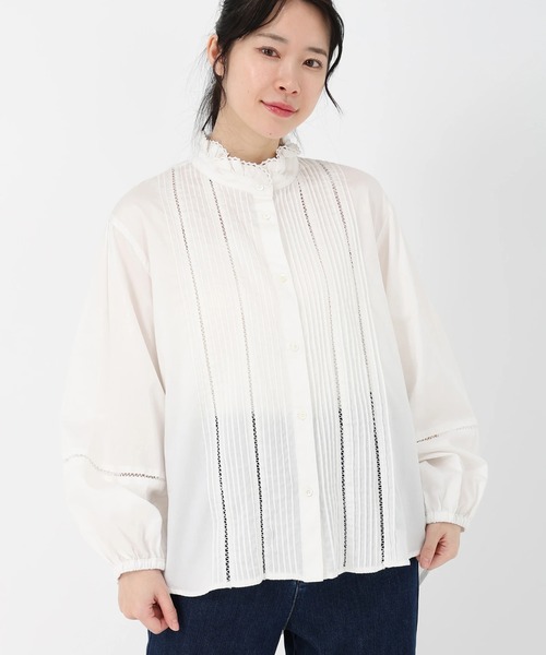 【セレクトアイテム】上質な素材を贅沢に使用し、フロントに繊細なピンタックとレースを交互にあしらった、アンティークのような趣漂う一着。 顔まわりを華やかに見せるフリルカラーと、計算されたディテールが、大人の日常に特別感を添えてくれます。 ■ 贅沢なフロントデザインとシルエット 肩の切り替えと袖口にギャザーをたっぷり入れたボリュームスリーブ。 袖を通すだけで、しなやかで優雅なシルエットが完成します。 背面にもピンタックとギャザーを配し、360度どこから見ても抜かりない、ふんわりと空気を含んだような立体感を演出します。 ■ スタイリングの主役として一枚で着映えするのはもちろん、デニムでカジュアルダウンしても、 タイトなスカートでクラシックにまとめてもサマになる、万能ブラウスです。 セレクトアイテム…他社仕入れの商品。ブランドタグがSTRAWBERRY-FIELDSではない場合があります。 《お気に入り登録》はお得がいっぱい! 「商品」のお気に入り登録で、再入荷、ラスト1点、セールなどお得な通知を受け取ることができます。 「ブランド」のお気に入り登録で、新商品や再入荷などいち早くブランドの情報を受け取ることができます。 是非、この機会にご登録くださいませ。