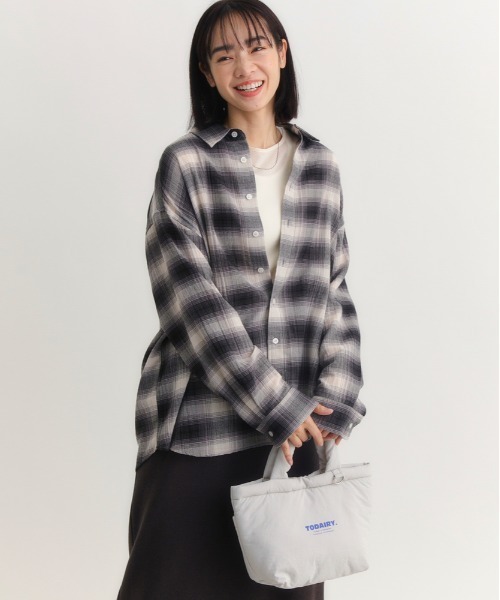 羽織るだけで、大人の抜け感。体型カバーも叶う最旬チェックビッグシャツ。 「ゆるっと感」が可愛い。重ね着で魅せる、万能レイヤードアイテム。 シワも気にならないナチュラルな風合い。気負わず着られる日常の相棒。 ■Point ・身体を包み込む「ゆるシルエット」 ラインを拾わず、リラックスした着心地。 華奢見え効果のあるドロップショルダー。 大人の余裕を感じさせるサイズ感。 ・表情豊かな「シボ感」のある素材 表面の凹凸がナチュラルな雰囲気を演出。 のっぺりせず、高見えする生地の風合い。 シワが気になりにくく、お手入れも楽々。 ・安心感のある「ヒップ隠し」丈 気になる腰回りをすっぽりカバーします。 前後の着丈差で、横顔もスタイリッシュに。 インでもアウトでも決まる絶妙バランス。 ・コーディネートの主役「チェック柄」 子供っぽくならない、落ち着いた配色。 秋冬の装いに馴染む優しいカラーリング。 暗くなりがちなコーデのアクセントに。 ・インナー使いで「裾見せ」テクニック ニットやスウェットの下に重ねてこなれ感。 裾からチラリと覗かせるだけで上級者見え。 お尻まで隠れる丈がレイヤードに最適。 ・季節を繋ぐ「羽織り」としても活躍 Tシャツの上にさっと羽織って温度調節。 季節の変わり目に重宝する一枚です。 袖をまくって手首を見せればスッキリ。 【仕様】 ゆったりとした身幅とドロップショルダーが、リラックス感のある着こなしを叶えるビッグシャツです。 シンプルながらも存在感のあるチェック柄が、コーディネートの主役になります。 背中に入ったタックがふんわりとした立体的なシルエットを作り出し、360度どこから見ても様になるデザインに仕上げました。 【素材】 表面にポコポコとした凹凸のある、表情豊かな素材を使用しています。 肌への接地面が少なく、さらりとした快適な着心地が魅力です。 元々の風合いを活かした生地感なので、着用時のシワも気になりにくく、デイリーに気兼ねなく愛用いただけます。 柔らかな肌触りで、ロングシーズン活躍します。 【スタイリング】 ボタンを閉じて一枚で着るのはもちろん、タンクトップの上にさっと羽織るだけでこなれた印象に。 秋冬はニットやスウェットのインナーとして着用し、裾からチェック柄を覗かせるレイヤードスタイルもおすすめです。 細身のデニムでメリハリをつけたり、ナロースカートで女性らしくまとめるのも素敵です。