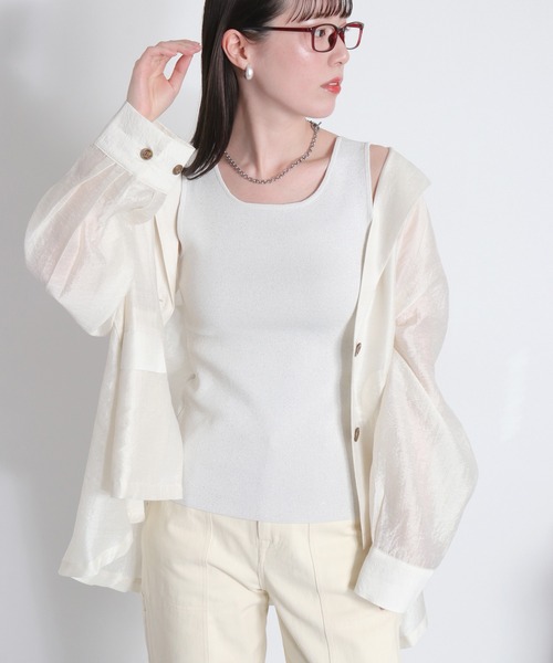 【前後2WAY】ラメソウバリニットインナータンク/スクエアネック&Uネック 着た瞬間に違いがわかる、人気の“ソウバリシリーズ”新作。 コーディネートに女性らしい華奢なイメージをプラスするラメ仕様。 目の詰まった編み地と程よいハリ感で、インナーながら1枚でも決まる万能ニットタンクトップです。 ロングシーズン活躍する、ワードローブに欠かせないベーシックアイテム。 ■POINT ・前後2WAY(スクエアネック/Vネック)仕様 ・デコルテを美しく見せる絶妙な開き ・シンプルで着回し力抜群 ・ジャケットやシャツのインナーに最適 ・きれいめにもカジュアルにも対応 スクエアネックはやや浅めで上品な印象に。 Vネックはやや深めで抜け感をプラス。 その日の気分やコーデに合わせて表情を変えられます。 ■MATERIAL ・ソウバリ編みならではのフラットで高見えする表面感。シワにも強い素材。 ・全体に散りばめられたラメが上品さをプラス ・程よい厚み&ハリ感でボディラインを拾いにくい ・さらっとした肌触りでストレスフリーな着心地 ・透けにくく安心感のある素材感 ・家庭洗濯可能なイージーケア コンパクトなシルエットながら、膨張見えしにくいのも嬉しいポイント。 ■COORDINATE ・シアーシャツやニットカーディガンのインナーに ・ジャケット合わせでオフィスカジュアルにも◎ ・デニム合わせで大人カジュアルに ・スカートと合わせてフェミニンスタイルにも 夏は1枚でさらっと、春秋は羽織りのインナーとしてロングシーズン活躍します。 “シンプルだからこそ、素材とシルエットにこだわりたい” そんな方に選ばれている1枚です。 ※照明や天候により実際の色味と異なって見える場合がございます。ご了承くださいませ。 【キーワード】 #Y2K#10代#20代#30代#40代#50代#インナートップス#春夏#アウトドア#ヘルシー#肌見せ