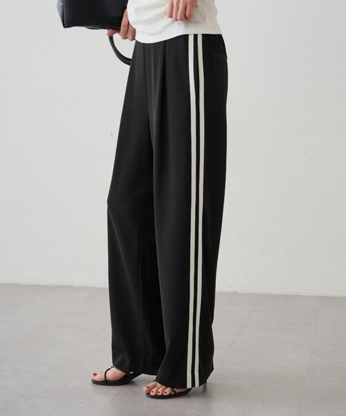 モードとリラックスを両立。大人のためのラインパンツ。 ■デザイン 程よいワイドシルエットで気になる体型をカバーしながら、美しいレッグラインを演出してくれる一着です。 脚長効果が期待できるホワイトのサイドラインが視線を惹きつけ、コーディネートのアクセントにもなります。 また、ウエストデザインにもこだわっており、トップスをインしてすっきりとした着こなしはもちろん、アウトしてカジュアルに着るなど、さまざまなスタイリングを楽しんでいただけます。 ■コーディネート カジュアルなTシャツと合わせれば、大人の抜け感のあるリラックスしたスタイルに。 ブラウスやジャケットと合わせることで、オフィスにも対応できるきちんと感のある着こなしも楽しめます。 足元はスニーカーでカジュアルに、ヒールを合わせればエレガントな印象にと、合わせるアイテム次第でさまざまなスタイリングが叶います。 ■素材・洗濯表記 ポリエステル100% 洗濯表示:手洗い推奨 ●裏返してネットに入れて洗濯してください。 ●洗濯の際は、色落ちすることがありますので、他の物と分けて単独で洗ってください。 ●洗濯後は、形を整えて陰干ししてください。 ● アイロンの際は、当て布をしてください。 ●この製品はクリーニング溶剤を汚すおそれがあります。 ドライクリーニングされる場合は単独での洗いを依頼してください。 ●汗や水、摩擦により他のものに色移りすることがありますのでご注意ください。 【お気に入り登録をクリックでお得な情報をお知らせいたします 】 完売カラーの再入荷やラスト1点の通知、セールの通知を受けとることができます。 【ブランドのお気に入り登録】 新商品や再入荷、いち早くセールやクーポンなどのブランドの情報を受けとることができます。 生産の都合上、お届け時期が前後する場合がございます。 システムの都合上、店舗より入荷が遅れる場合がございます。 実際にお届けする商品と仕様やサイズが異なる場合がございます。 照明や光の当たり具合で色味が違って見える場合があります。