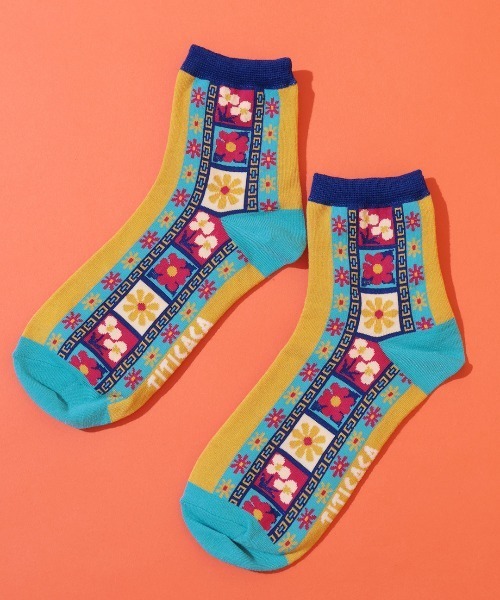 カラフルな祭りをまとうデザインソックス 世界のカラフルなお祭りをモチーフにしたデザインソックス。 足元からスタイリングに遊び心をプラスできるアイテムです。 イエローは、グアテマラの「セマナサンタ」で地面に描かれる花の絨毯「アルフォンブラ」をイメージ。 ネイビーは、ペルーの太陽の祭り「インティライミ」をモチーフにしたデザインです。 程よい丈感で、スポーティーなスタイルからカジュアルコーデまで幅広くマッチ。 シンプルなコーデのアクセントにもおすすめです。 サイズは23-25cmで、カラーはネイビー、イエローの2色をご用意いたしました。 【TITICACAのお買いものをお楽しみいただくために!】 ▼商品のお気に入り登録 完売カラーの再入荷通知や、ラスト1点の通知、セールの通知も受け取ることができます。 ▼ブランドのお気に入り登録 新商品や再入荷など、いち早くブランドのお得な情報を受けることができます!