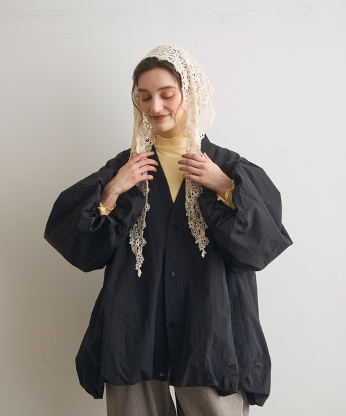 【エアリーなバルーンシルエットが目を惹くミリタリーな雰囲気のジャケット】 ・大きく開いたVネックはタートルやハイネックインナーとの相性○ ・マフラーなど首元にボリュームがあってもすっきり着られるのが嬉しいポイント ・ふわっとしたエアリーシルエットがポイント、袖口もバルーンになっており全体的に柔らかな雰囲気に ・甘くなりすぎないシックなカラーがレースなどのアイテムとも相性良く、着回しやすい1枚 ~スタイリング~ 季節の変わりめに活躍のライトアウター。 フレアスカートとナチュラルにもデニムとカジュアルに着るのも◎ 合わせるボトムスを選ばず幅広いコーデと相性良く着回せます。 バルーンシルエットが映えるスラックスやハーフパンツと合わせるのもおすすめです。 - - - - - - - - - - - - - - - - - - - - - - - - - - - - - - - - - 透け感:なし 厚さ:普通 光沢感:なし 伸縮性:なし(袖口と裾はゴム仕様) 裏地:あり 仕様:前ボタン開き 洗濯:ドライクリーニング推奨 - - - - - - - - - - - - - - - - - - - - - - - - - - - - - - - - - ※着用、お取り扱いの際は、商品についている品質表示とアテンションタグを必ずご確認下さい。 春秋/ライトアウター/バルーンシルエット/大人ナチュラル/カジュアル