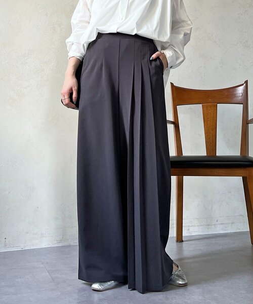落ち感のある素材でキレイめ見え×体型カバーが叶うデザインワイドパンツ ‐POINT‐ ・ジョーゼット素材でキレイめな印象になるのでオフィススタイルにも◎ ・サイドプリーツデザインで体型カバー ・ウエストはゴムで着脱らくちん ・履くだけでオシャレに決まるデザイン -------------------------------- お手入れ:手洗い可 透け感:裾部分ややあり 裏地:なし 伸縮性:なし ポケット:あり 光沢:なし 生地感:やや薄手 -------------------------------- 【♡をクリックでお得な情報をお知らせいたします】 〈商品のお気に入り登録〉 お気に入りアイテムのお値下げ・再入荷・在庫ラスト1点など通知を受けることができます。 〈ブランドのお気に入り登録〉 Croisièreの新商品や再入荷、セール、クーポン配布などお得な情報を受けとることができます。 -------------------------------- ※掲載商品のお色味は撮影場所やお使いのモニター環境により若干異なる場合がございます。 特に、ロケ撮影では明るく見える傾向にございます。予めご了承ください。 ※生産の都合上、お届け時期が前後する場合がございます。 ※着用、お取り扱いの際は商品についている品質表示とアテンションタグを必ずご確認ください。