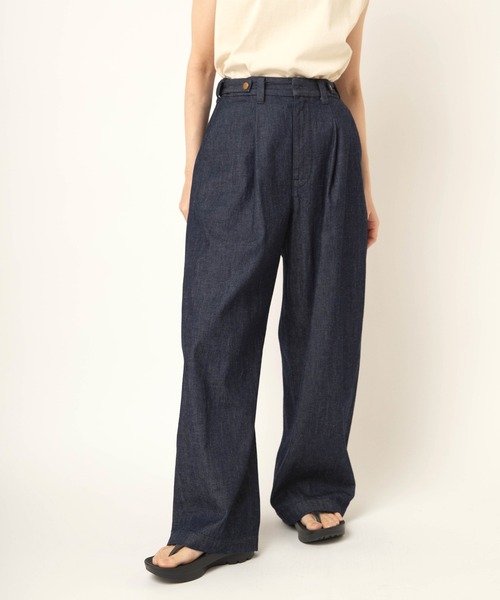 カジュアルなデニムを使用しながらも大人っぽさがあるスラックス ■POINT■ シルエットはセミワイドストレート。リラックス感がありながらも、ルーズになりすぎないバランスに仕上げています。しっかりと加工を施していますが、スラックスベースのデザインのため、カジュアルな中にも大人っぽさがあり、爽やかなスタイリングが可能。日常に取り入れやすく、スタイリングの幅も広がる一本。。 ■STYLING■ ウエストはサイドのパーメックスでサイズ調整が可能。一番大きい状態で留めると、ベルト部分にゴムが寄らずフラットな見え方になるため、ベルトを主役にしたスタイリングや、タックインした着こなしにもおすすめ。 ■生地■ 7ozのライトオンスデニムを使用。軽さがあり、暑い夏でも快適なはき心地。薄手ながらも加工映えする素材感で、表情のある仕上がりになっています。 ■COLOR■ ワンウォッシュカラーらはよりベーシックなコーディネートを好む方におすすめ。 ■お取り扱いについての注意■ 着用時の摩擦や水分、汗により、他の衣類や鞄などに色移りすることがありますのでご注意ください。洗濯の際は色落ちしますので、単品洗いをしてください。また洗濯により表面の色が落ちてきて、味のあるユーズド感が出ることで経年変化を楽しめます。アテンションラベルの確認も必ずお願いします。 透け感:透けない 伸縮性:なし 裏地:なし ポケット:あり ウエストゴム:あり ※こちらは参考情報となります。多少の誤差はご了承ください。 ---------------------------------------------------------------------- ◆◆お気に入り登録しておすすめ情報をゲットしよう◆◆ 【商品のお気に入り登録】 再入荷、残り1点、セール、タイムセール、クーポンなど、 いち早く受け取ることができます。 【ショップ・ブランドのお気に入り登録】 新商品、予約商品、再入荷、ショップのおすすめトピックスなど、 ショップ・ブランドの最新情報を受け取ることができます。 ---------------------------------------------------------------------- ※商品についている品質表示タグやアテンションタグを必ずご確認の上、着用、またはお取り扱い下さい。 ※画像の商品はサンプルです。実際の商品と仕様、加工、サイズが若干異なる場合がございます。 ※撮影場所により、光の当たり具合で色味が異なって見える場合がございます。商品写真はできる限り実物の色に近づけるようにしておりますが、実際の商品と色味が異なる場合がございます。カラーは商品の掛け画像をご参照下さい。