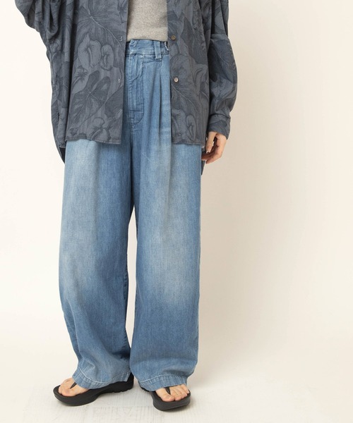 カジュアルなデニムを使用しながらも大人っぽさがあるスラックス ■POINT■ シルエットはセミワイドストレート。リラックス感がありながらも、ルーズになりすぎないバランスに仕上げています。しっかりと加工を施していますが、スラックスベースのデザインのため、カジュアルな中にも大人っぽさがあり、爽やかなスタイリングが可能。日常に取り入れやすく、スタイリングの幅も広がる一本。。 ■STYLING■ ウエストはサイドのパーメックスでサイズ調整が可能。一番大きい状態で留めると、ベルト部分にゴムが寄らずフラットな見え方になるため、ベルトを主役にしたスタイリングや、タックインした着こなしにもおすすめ。 ■生地■ 7ozのライトオンスデニムを使用。軽さがあり、暑い夏でも快適なはき心地。薄手ながらも加工映えする素材感で、表情のある仕上がりになっています。 ■COLOR■ ワンウォッシュカラーらはよりベーシックなコーディネートを好む方におすすめ。 ■お取り扱いについての注意■ 着用時の摩擦や水分、汗により、他の衣類や鞄などに色移りすることがありますのでご注意ください。洗濯の際は色落ちしますので、単品洗いをしてください。また洗濯により表面の色が落ちてきて、味のあるユーズド感が出ることで経年変化を楽しめます。アテンションラベルの確認も必ずお願いします。 透け感:透けない 伸縮性:なし 裏地:なし ポケット:あり ウエストゴム:あり ※こちらは参考情報となります。多少の誤差はご了承ください。 ---------------------------------------------------------------------- ◆◆お気に入り登録しておすすめ情報をゲットしよう◆◆ 【商品のお気に入り登録】 再入荷、残り1点、セール、タイムセール、クーポンなど、 いち早く受け取ることができます。 【ショップ・ブランドのお気に入り登録】 新商品、予約商品、再入荷、ショップのおすすめトピックスなど、 ショップ・ブランドの最新情報を受け取ることができます。 ---------------------------------------------------------------------- ※商品についている品質表示タグやアテンションタグを必ずご確認の上、着用、またはお取り扱い下さい。 ※画像の商品はサンプルです。実際の商品と仕様、加工、サイズが若干異なる場合がございます。 ※撮影場所により、光の当たり具合で色味が異なって見える場合がございます。商品写真はできる限り実物の色に近づけるようにしておりますが、実際の商品と色味が異なる場合がございます。カラーは商品の掛け画像をご参照下さい。