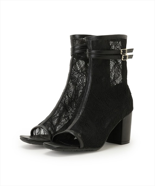 足元に華やぎを添えるベルト付きオープントゥレースブーツ 【Design】 ・繊細なレース素材が女性らしく上品な印象を演出するショートブーツ。 ・オープントゥデザインで、程よい抜け感と軽やかさをプラス◎ ・アクセントになるベルトデザインがスタイリングを引き締めます! ・程よくすっきりとしたシルエットで足元をきれいな印象に。 ・軽やかなレース素材を使用し、やわらかな雰囲気に♪ ・履くだけでコーディネートを格上げしてくれる主役級アイテムです! L:(03):サイズ24.0~24.5cm/ヒール7cm/筒丈13cm/筒周り25m/底幅7.5cm M:(02):サイズ23.0~23.5cm/ヒール7cm/筒丈13cm/筒周り25m/底幅7.5cm