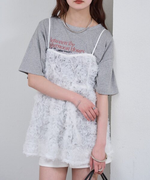 フラワーモチーフのチュールが華やかさをプラスしてくれるキャミチュニック ●デザイン ・立体感のあるフラワーモチーフのチュール素材が目を惹くキャミチュニック。 ・ふんわり広がるシルエットでフェミニンな印象に仕上げつつ、シンプルなインナーに合わせるだけでるタイリングを華やかにしてくれます。 ・肩紐は華奢なデザインで女性らしさをプラスしてくれます。 ●スタイリング ・ロゴTやシンプルなカットソーにレイヤードするだけでトレンド感のある着こなしになります。 ・デニムやスラックスを合わせてカジュアルスタイルに。 ・ミニボトムを合わせてフェミニンに仕上げるのも◎ ●おすすめスタイリングアイテム アソートプリントT バックシャンロングTシャツ クラッシュカーブパンツ ●素材/取り扱い方法 洗濯:40度限度 手洗い/石油系ドライクリーニング可 アイロン:低温120℃まで(あて布使用) タンブル乾燥:不可 裏地:なし 伸縮性:なし 光沢感:なし 生地の厚さ:うすめ ------------------------------------------------------ ▼商品のお気に入り登録 お気に入りアイテムのセール通知や完売カラーの再入荷通知、在庫残り1点などの通知を受け取ることができます。 ▼ブランドのお気に入り登録 新商品や再入荷、セール、クーポン配布などお得な情報をいち早く受け取ることができます。 ▼メルマガ登録 mysticのお得な情報やニュースを一足先にお届けします。 ------------------------------------------------------ 商品について ※ご注文いただいた予約商品のお届け時期の確認は、注文履歴ページより行えます。 ※サイト上のカラー名と、お届け商品に記載されているカラー名が異なる場合がございます。 ※商品の色味は、撮影場所や光のあたり具合などにより色味が違って見える場合が御座います 。 また、お客様のお使いのPCのモニター環境などにより色味が違って見える場合が御座います。予めご了承の上ご注文下さい。