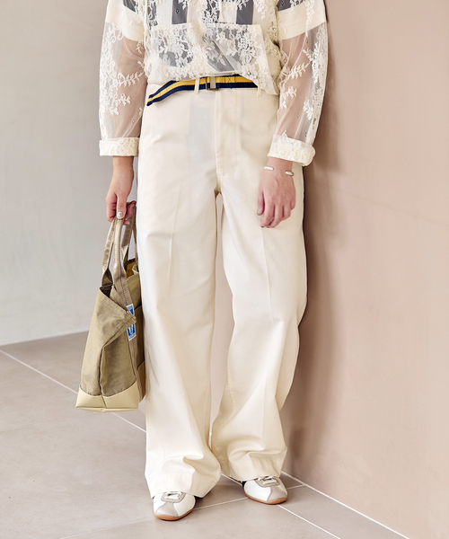 JOURNAL STANDARD ※カラーについて 弊社販売カラー名:メーカーカラー名 ナチュラル(016):#011OFF WHITE ベージュ(027):#027BEIGE ※サイズについて 弊社販売サイズ名:メーカーサイズ名 M(803):M L(804):L ワイドストレートシルエットのチノパンツ。 付属のベルトがシンプルなカットソーやシャツと合わせても様見えさせてくれます。 ※ベルトは取り外し可能です。 ワードローブに取り入れておきたい一本。 【BURK / バーク】 かつてテキサスを中心に活動していたBURK MANUFACTURINGが 手掛けていた Commercial Specのミリタリーブランド。 当時は伝統的なアメリカ製を守り続け、良質で手頃な値段のミリタリーウェアを多数生みだしていました。 チノパンツやベイカーパンツ、ミリタリージャケットの他、トラウザースやサファリジャケット等、ミリタリーウエアを中心に幅広く手掛けています。 ********************** 透け感:ナチュラルのみややあり 裏地:なし 伸縮性:なし 光沢感:なし 生地の厚さ:普通 ********************** 【スタッフ着用コメント】 《スタッフO》 年齢:30代前半/身長:158cm/体型:普通/普段サイズ:M/着用サイズ:L サイズ感:太すぎず細すぎず丁度良いサイズ感。付属のベルトで調整可能です。 素材感:しっかりとした綿素材のチノ。 着心地:着心地◎ ベルトで様になる一押しパンツです。 ※あくまでも個人の感想です。 ********************** ※取り扱いについては、商品についている取扱表示にてご確認下さい。 ※照明の関係により、実際よりも色味が違って見える場合があります。 またパソコン・スマートフォンなどの環境により、若干製品と画像のカラーが異なる場合もございます。 ※商品の色味は、商品アップ画像をご参照ください。