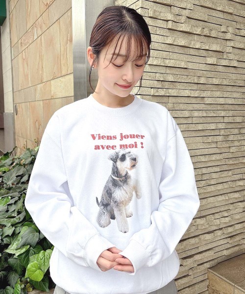 ■デザインポイント F i.n.tではおなじみのシュナウザーモチーフが愛らしい、プリントスウェット♡ 名前はリオくんです♡ ゆるっとオーバーサイズで着用でき、楽な着心地なのも嬉しいポイントです◎ お出かけにはもちろん、ルームウェアとしても幅広くお召いただけます。 ■オススメスタイリング 裾からミニボトムを覗かせたトレンドライクな着こなしや、デニムボトムと合わせたカジュアルコーデがオススメです。 キャップやスニーカーサンダルなどの小物を合わせてコーデを楽しんで。 ====== 透け感:なし 裏地:なし 生地感:ふつう ====== ▼Fint/フィント 50~70年代のクラシカルなヴィンテージデザインに トレンド感をプラスしたレトロ&ガーリースタイルをお届け。 古着屋で一点ものを見つけるような"ときめき"を感じられるブランドです。 ▼商品のお気に入り登録▼ 気になるアイテムの♡をクリックしてお気に入り登録すると残り1点の通知、完売カラーアイテム再入荷の通知、お得な通知が届きます。 ▼ショップお気に入り登録▼ ショップからの新作商品やお得なイベント情報など、いち早くブランドからの情報を受け取ることができます。