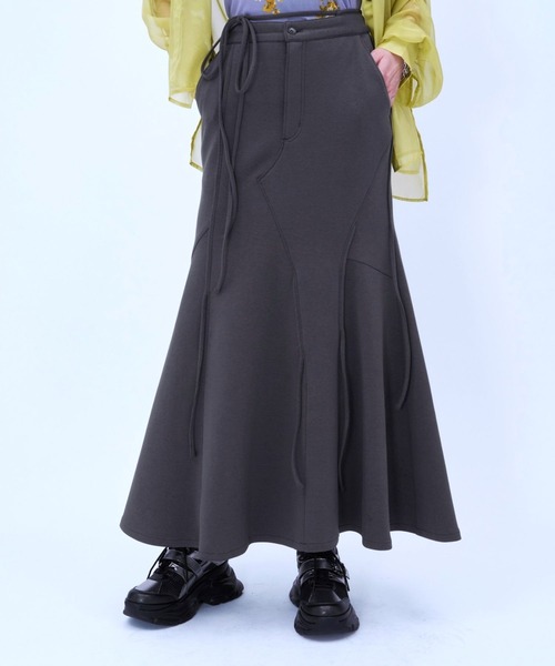 ーーー カット生地で履きやすい マーメイドシルエットがフェミニンモードなスカート ーーー point □女性らしいマーメイドシルエットでスタイルアップできる □アシンメトリーに紐が垂れたようなデザインがモードな印象 □カジュアルなポンチ素材で履き心地◎ □ウエスト上部に通し紐が付いており、肌見せもできる styling 骨格ナチュラル:あえてオーバーサイズのロゴスウェットやゆるめのニットをアウトスタイルが似合います。ウエストの紐は結ばず、ラフに垂らして縦のラインを強調するのがポイント。 骨格ウェーブ:シアー素材のブラウスやショート丈のカーディガンを合わせるのが◎ウエストの紐をリボン結びにして高めの位置を強調し、華奢な上半身にボリュームを出すと、マーメイドの広がりと調和して女性らしい上品なシルエットになります。 骨格ストレート:トップスにはVネックのハイゲージニットやジャストサイズの白シャツをイン。スカートの腰回りがスッキリしているのであえて上からセットアップ風のジレやテーラードジャケットを羽織ると、肉感を拾わず最高にスタイリッシュに決まります。 ※加工を施した画像を使用しております。 実物と色味が異なる可能性があるため、色味は詳細後ろにある生地寄り画像を参考にお願いいたします。 あらかじめご了承下さい。