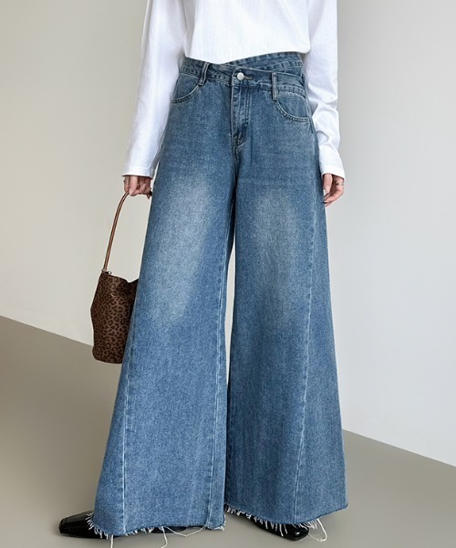 ヴィンテージライクなトレンド感 クロスウエスト ワイドデニムパンツ ■カラー グレー ブルー ■商品特徴 ・クロスウエストがアクセント。ヴィンテージ感漂う 色落ちと切りっぱなし裾デザインが穿くだけで今っぽい デニムパンツ。 ・ハイウエスト×縦ラインを強調するシルエットで腰位置を高く脚はすらっと。 ・ヴィンテージライクな色落ち加工と、裾はあえて 仕上げすぎないラフな切りっぱなしデザインが抜け感と こなれ感をプラスした一本です。 ■詳細説明 ・デニムパンツ ・ウエストクロスデザイン ・ワイド ・色落ち加工 ・裾切りっぱなし ■スタイリング 王道トレンドコーデ ・コンパクトTシャツ or ロゴロンT・ミニショルダー+スニーカー→ ストリート感×今っぽさ全開大人カジュアル・シアートップス or リブニット・ポインテッドトゥパンプス→ ラフすぎない大人バランスに秋口レイヤード・ショート丈ニット/ベスト・ローファーやブーツ→ クロスウエストが引き立つ着こなしに ■生地 …………………… コットン 65% ポリエステル 35% 裏地:なし 透け感:なし 伸縮性:なし 生地の厚さ:普通 …………………… ■サイズ S: 総丈 101cm ウエスト 64cm ヒップ 100cm M: 総丈 102cm ウエスト 68cm ヒップ 104cm L: 総丈 103cm ウエスト 72cm ヒップ 108cm ■ブランド紹介 COCOMOMO ベーシックなものからトレンドを意識した最旬ファッションまで、どれも取り入れやすい価格帯でご用意。 カジュアルからコンサバ、きれいめ、大人女子系など幅広いスタイルを取り揃えております。 いくつになってもおしゃれを楽しみたい全ての女性たちをCOCOMOMOは応援しています! ■お気に入り登録 ★《お気に入り登録》でお得な情報がいっぱい★ ・「商品のお気に入り登録」で再入荷通知や、ラストの通知、セール通知も受け取ることができます ・「ブランドのお気に入り登録」で新商品や再入荷など、お得な情報を受け取ることができます! ※平置き・メジャー採寸の為、誤差が生じる場合がございます。予めご了承ください ※染色や素材の性質上、摩擦や汗・雨などにより色落ちや色移りする可能性がございますので、淡色アイテムとのコーディネートには十分ご注意ください ※洗濯時は単独洗い・裏返し・ネットのご使用をおすすめいたします。長時間水につけておくと色移りする恐れがありますので洗濯後はすぐに形を整えて陰干ししてください ※商品は折りたたんで梱包・発送しておりますため、開封時にたたみシワが生じている場合がございます。あて布をし軽くスチームアイロンをかけていただくか、 吊るして保管いただくことで自然にシワは軽減されます ※デニムならではの染色加工によるインディゴや染料の匂いがある場合がございます。気になる場合はご使用の前に陰干ししていただくことで軽減されます。 ※ウォッシュ加工の出方や色味には個体差がございます。一点もののような表情をお楽しみください ※裾はデザイン上の切りっぱなし仕様です。ほつれは不良ではなく、風合いとしてお楽しみください ※上記はデニム特有の性質によるもので、不良品ではございません。 ※商品画像は撮影時の光や角度により、実物の色味と異なって見える場合がございます ※撮影はサンプル品を使用しており、表示のサイズ感も実物とは若干異なる場合もございますので、予めご了承ください ※生産時期により色・素材・サイズ感など多少異なる場合がございます。予めご了承ください ※他のキャンペーンにより、期間中に価格が変動する場合があります ※セールは予告なく終了させていただく場合もあります