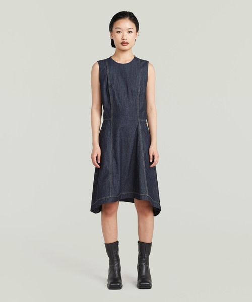 ■アイテム説明 構築的なフィット&フレアが映える、ショート丈デニムドレス。 Short Flare Dressは、上半身をすっきりと見せるフィットシルエットと、裾に向かって広がるフレアラインを組み合わせた一着。幅広のストラップが安定感とモダンな印象をプラスします。 バックジップ仕様で着脱もしやすく、シンプルながら完成度の高いデザインに仕上げています。 ■DETAIL ・フィット&フレアシルエット ・スリーブレス ・ショートレングス ・バックジップ開閉 ・幅広ストラップ ■FABRIC 100% コットン しっかりとした生地感のデニム素材を使用。程よいハリが美しいシルエットをキープします。 ■STYLING ・ブーツと合わせてエッジの効いたスタイルに ・Tシャツをレイヤードしてカジュアルに ・ジャケットを羽織って都会的な着こなしにも タイムレスに着られる、デニムフレアワンピースです。 G-STARについて 固定観念の破壊を掲げ、解剖学的な視点を取り入れたデザインのコレクションを展開するアムステルダムのストリートブランド。 1989年に誕生して以降、バイカージーンズ「ELWOOD」が象徴するアヴァンギャルドなジーンズや、ワーク・ミリタリーのヴィンテージを現代的に洗練したウェアで構成するコレクションがアンダーグラウンドなストリートピープルの認知を獲得し、ヨーロッパを中心に確固たるポジションを確立しました。 創造性とクラフトマンシップに敬意を払い、エレガントでありながらも反逆的なスタンスが生み出すプロダクトが、世界のセレブリティやアーティストをはじめとした独自のスタイルを持つ人々に愛されています。 《お気に入り登録》でお得な情報をゲット。 ・「商品のお気に入り登録」で再入荷通知や、ラスト通知、セール通知も受け取ることができます。 ・「ブランドのお気に入り登録」で新商品や再入荷など、お得な情報を受け取ることができます。 ※照明の関係により、実際よりも色味が異なって見える場合があります。 またパソコン・スマートフォンなどの環境により、若干商品と画像の色味が異なる場合もございます。 予めご了承ください。