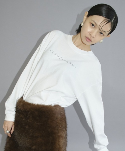 CLANE x FRGMT(フラグメント) ロンT CLANE 10周年を記念してCLANEと藤原ヒロシ氏主宰の「fragment design」とのコラボアイテムが登場。 カジュアルなムードのルーズロングTシャツ。 今回のコラボレーションのために、藤原ヒロシ氏がデザインしたグラフィックをプリントしました。前面はCLANEとFRAGMENTのオリジナルロゴ。背面のグラフィックは、教会をイメージしてデザインされた線画グラフィックを施しました。 Lサイズはメンズの方にも着用いただけます。 --------------------------- 裏地:なし ストレッチ:あり 透け:WHTややあり --------------------------- ※光の当たり具合や端末等の閲覧環境によって、実際の色味と異なって見える場合がございます。予めご了承ください。 ※表記サイズは商品の実寸で、布製品の特性上、表記サイズと多少の誤差が生じる場合がございます。 ※画像の商品はサンプルの為、実際の商品と色味、仕様、加工、サイズ、素材等が若干異なる場合がございます。