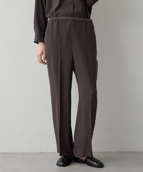 【2026SS】 大人の余裕を感じさせる、大人のイージーパンツ ■リラックス感のあるシルエットのイージーパンツ。 ■ウエストはゴム仕様にドローストリングをあしらい、快適な穿き心地と程よい抜け感を両立。 ■フロントに入れたシームが縦のラインを強調し、ワイドシルエットながらもすっきりとした印象に。 ■身体のラインを拾わないストレートフォルムと、落ち感のあるシルエットが、自然体で洗練されたムードを演出。 ■滑らかな肌触りのバックサテンは、ナチュラルストレッチも効いており着心地も快適。 ■同素材のトリアセブラウス(ブランド品番:WGZ1061204A0015)とセットアップで着用すれば、より一層モダンなスタイルに。 ■Tシャツやニットと合わせたラフなスタイリングもおすすめで、シーンを問わず活躍する万能な一本。 【COLOR】 ベージュ:ナチュラルで上品なくすんだピンクベージュ。 ブラウン:赤みを抑えた深みのあるカラーがシックなブラウン。 【MATERIAL】 パウダリー感・美しいドレープ感・バックサテンの滑らかな肌触りが魅力のバックサテン。 ---------------------------------------------------- 洗濯方法:手洗い可 透け感:なし 裏地:なし 伸縮性:なし 光沢感:なし ---------------------------------------------------- 【注意事項】 ・画像の商品はサンプルです。実際の商品と仕様、加工が若干異なる場合があります。 また 、パソコンやスマートフォンのモニター環境などにより、色味が違って見える場合がございます。 ・店頭及び屋外での撮影画像は、光の当たり具合で色味が違って見える場合があります。 商品の色味は、スタジオ撮影の画像をご参照ください。 ・入荷状況により、お届け予定が前後する場合があります。 ・お客様への発送が店頭販売より遅れる場合があります。 ・追加生産商品は、一部の店舗、通販で販売中の場合があります。 予めご了承下さい。 【 気になるアイテムは、「お気に入り」登録を】 ハートマークをクリックしておくことで、スムーズにお買い物が楽しめます。 ・ラスト一点のお知らせ ・再入荷のお知らせ ・SALEのご案内